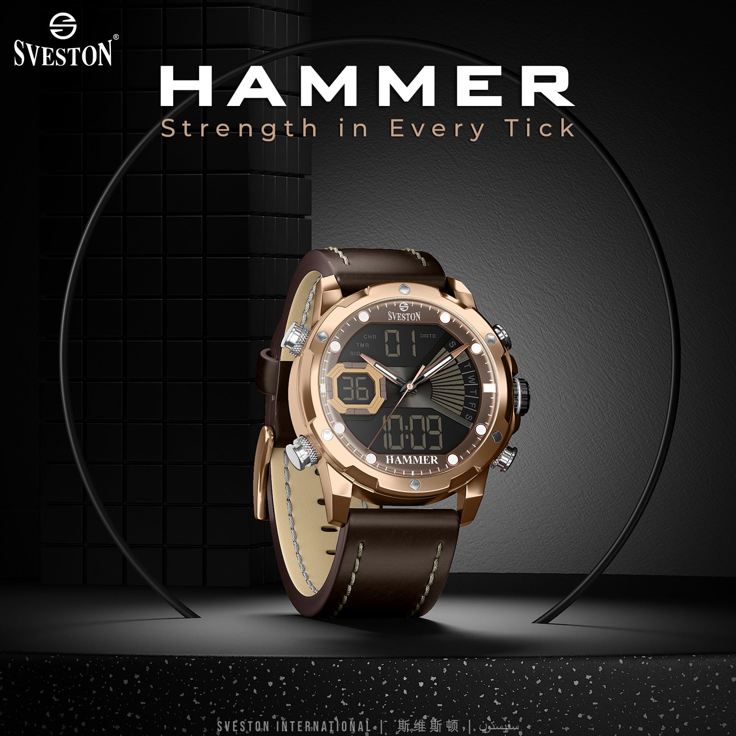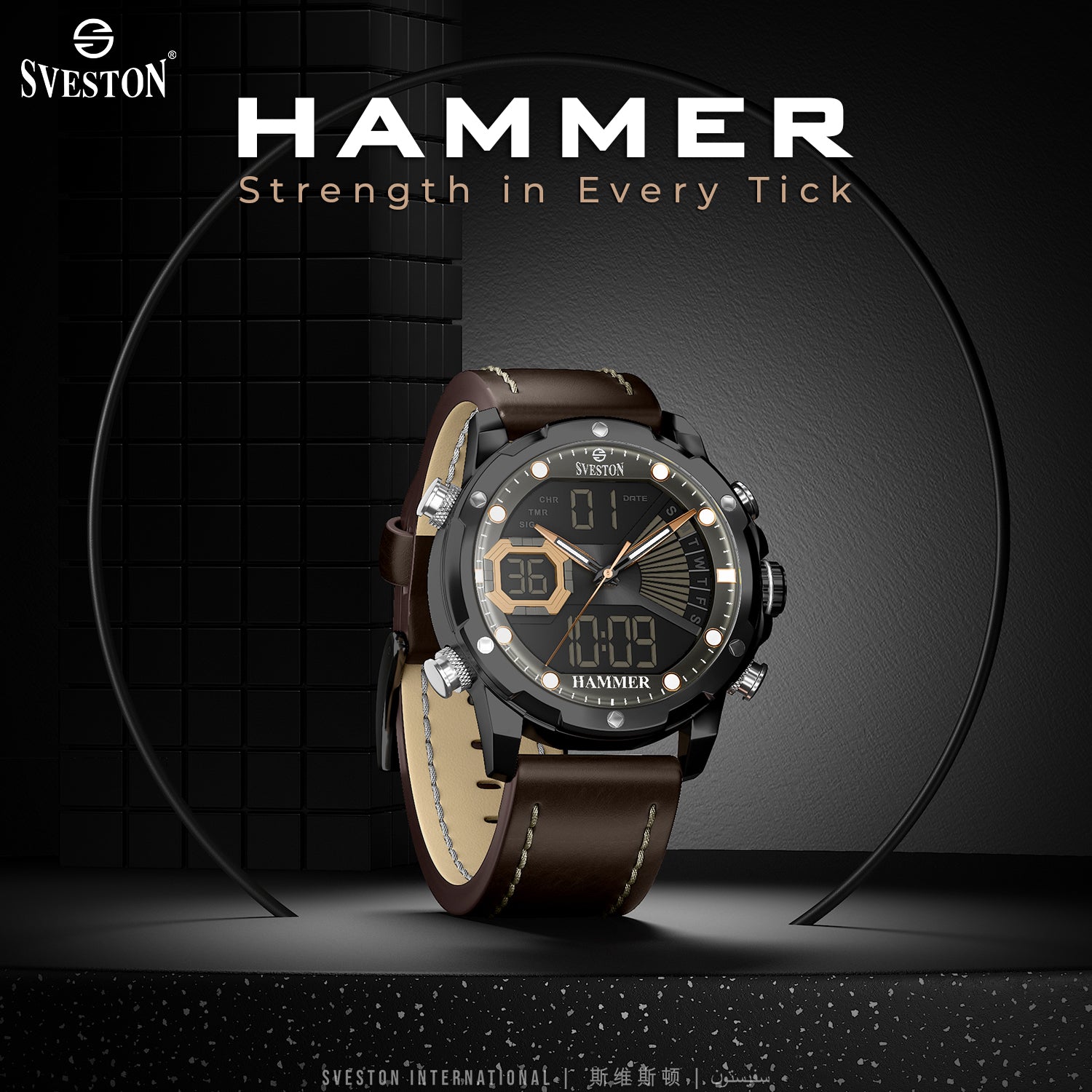 Sveston Hammer 1.0 is a gents’ leather timepiece featuring a 40mm dial designed for men who value strength, precision, and a bold sense of style.