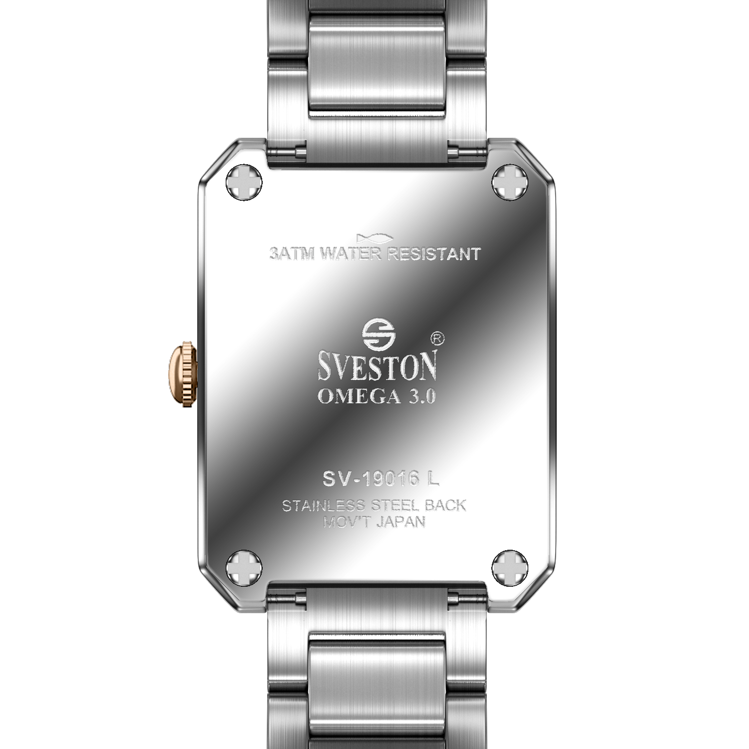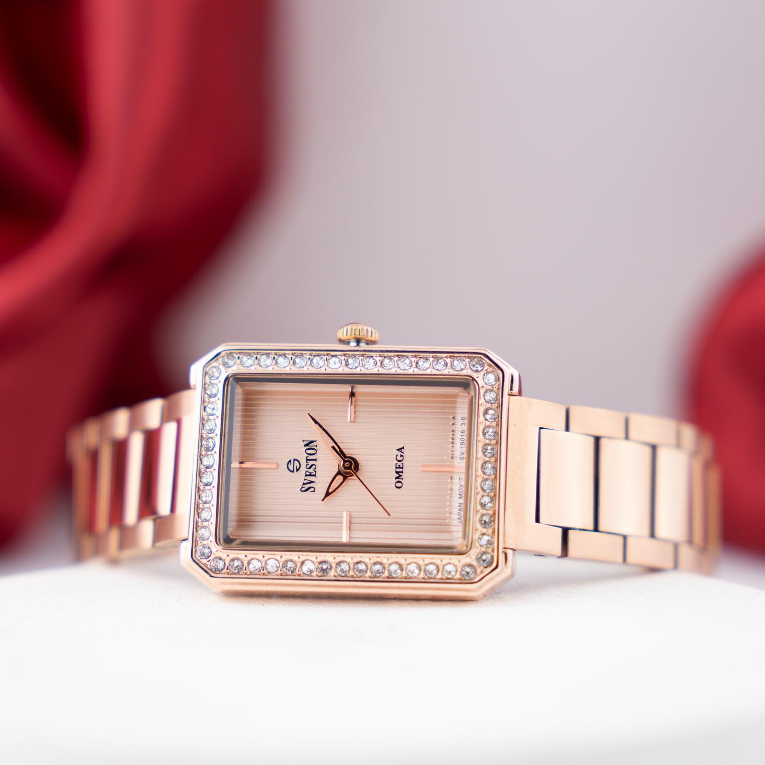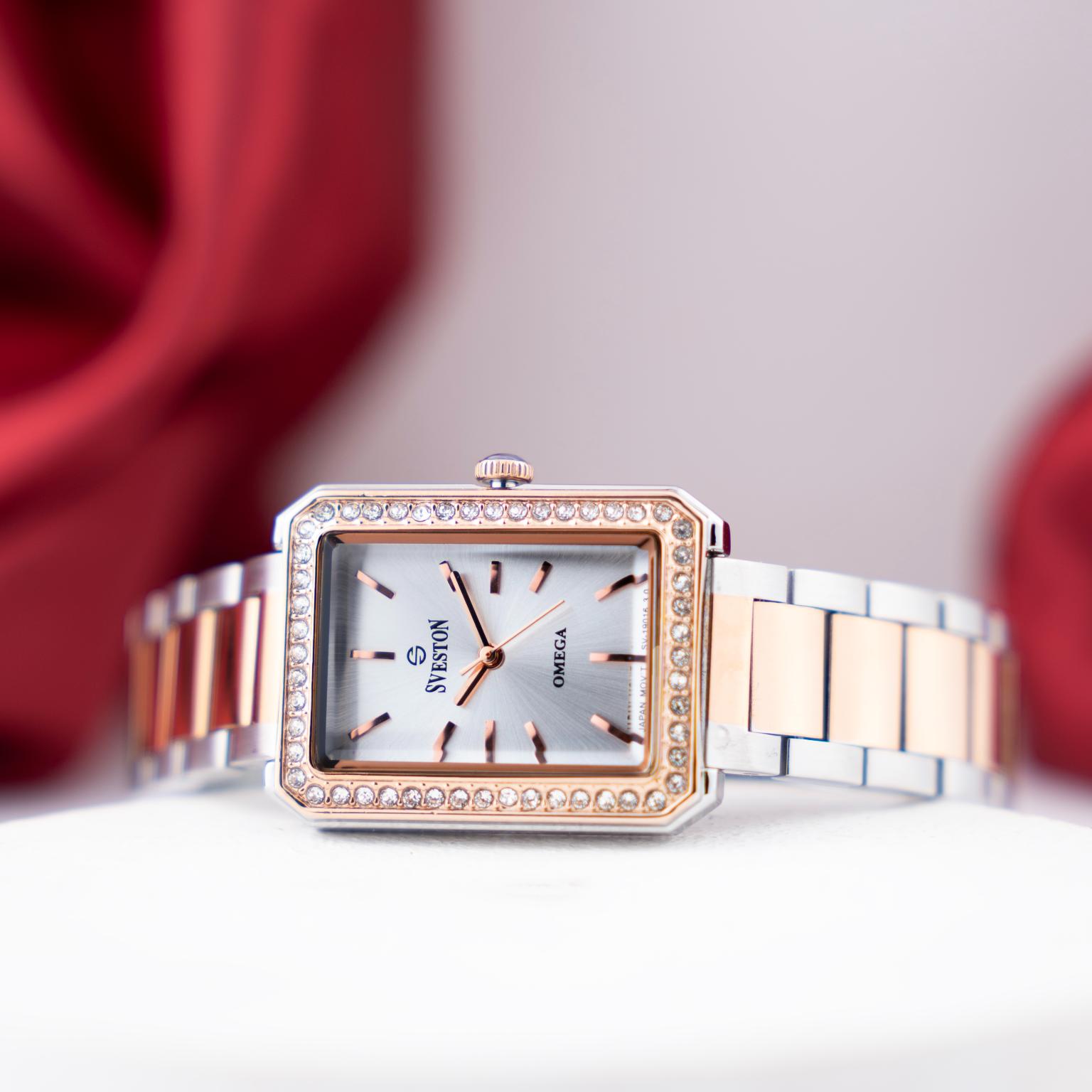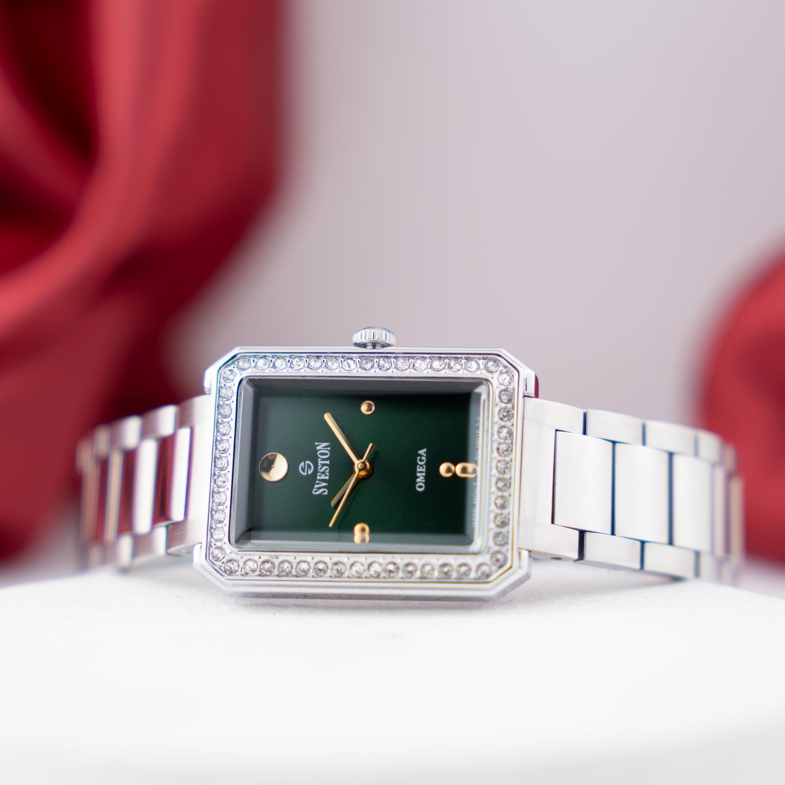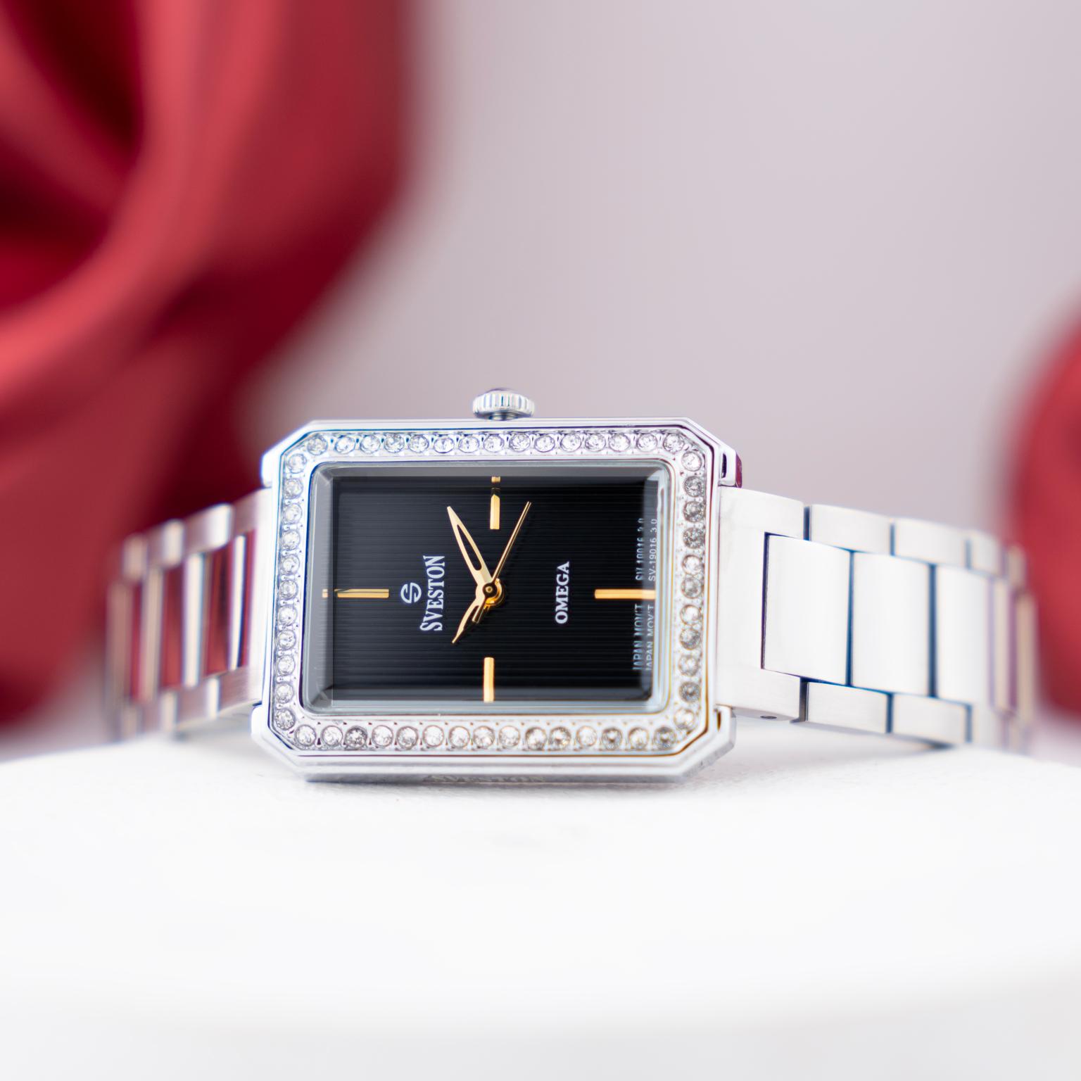 Sveston Omega is a feminine stainless steel watch featuring a 21mm delicate dial and a sleek, elegant design perfect for adding a touch of sophistication to any outfit