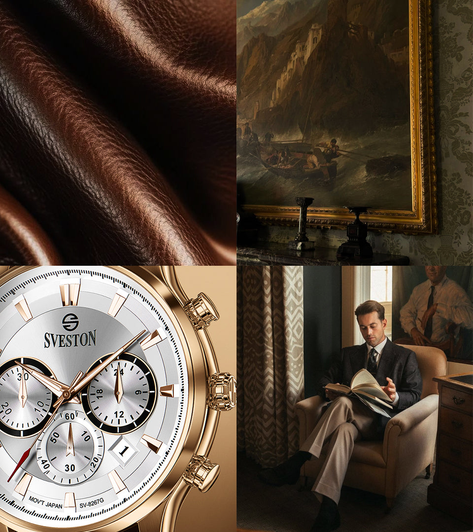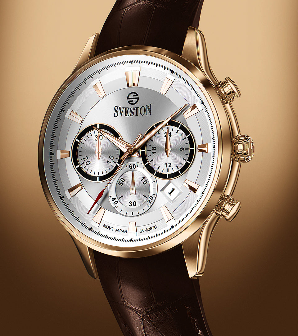 Sveston Zentro a gents leather strap watch with a 40mm dial, perfectly paired with a luxury watch case for a touch of elegance.