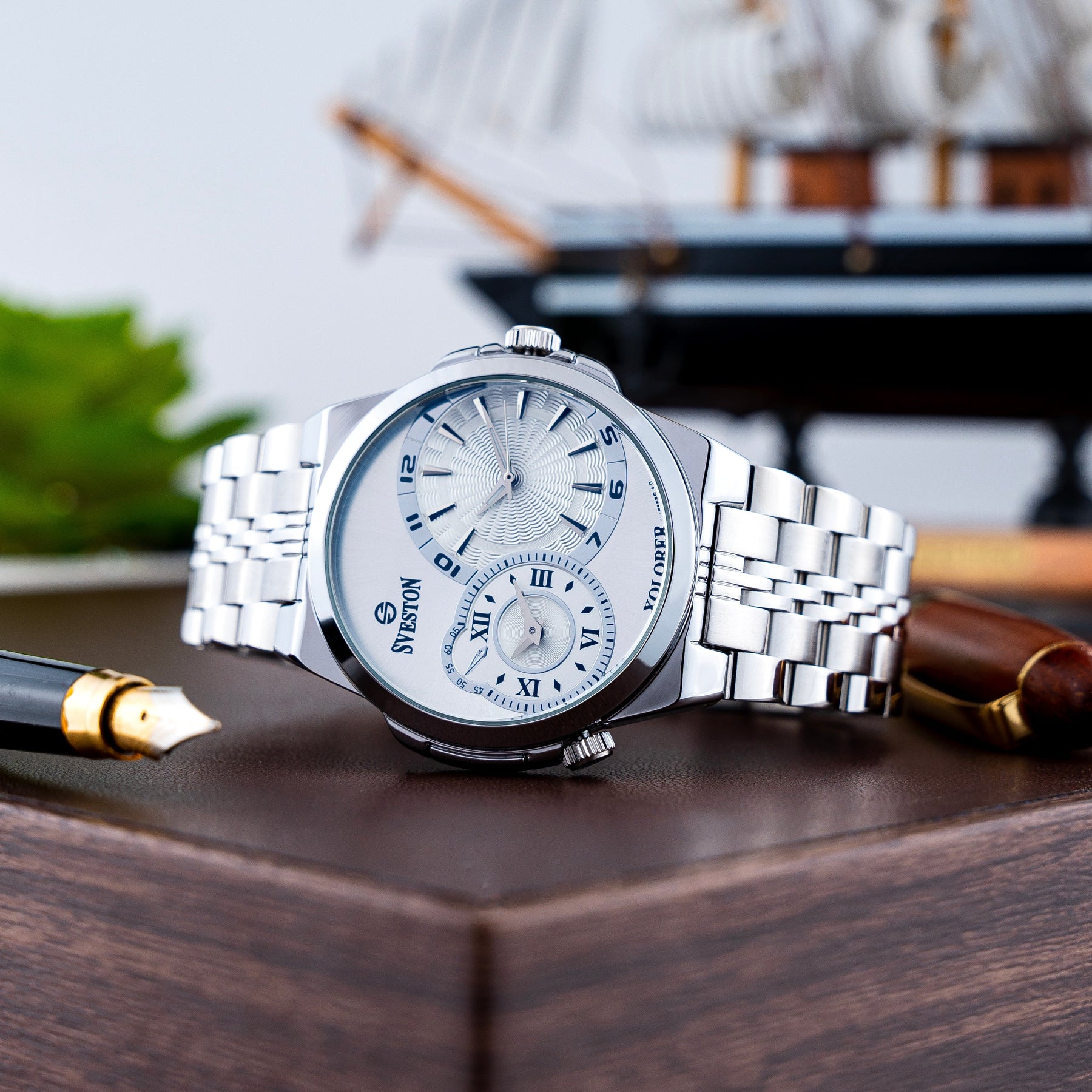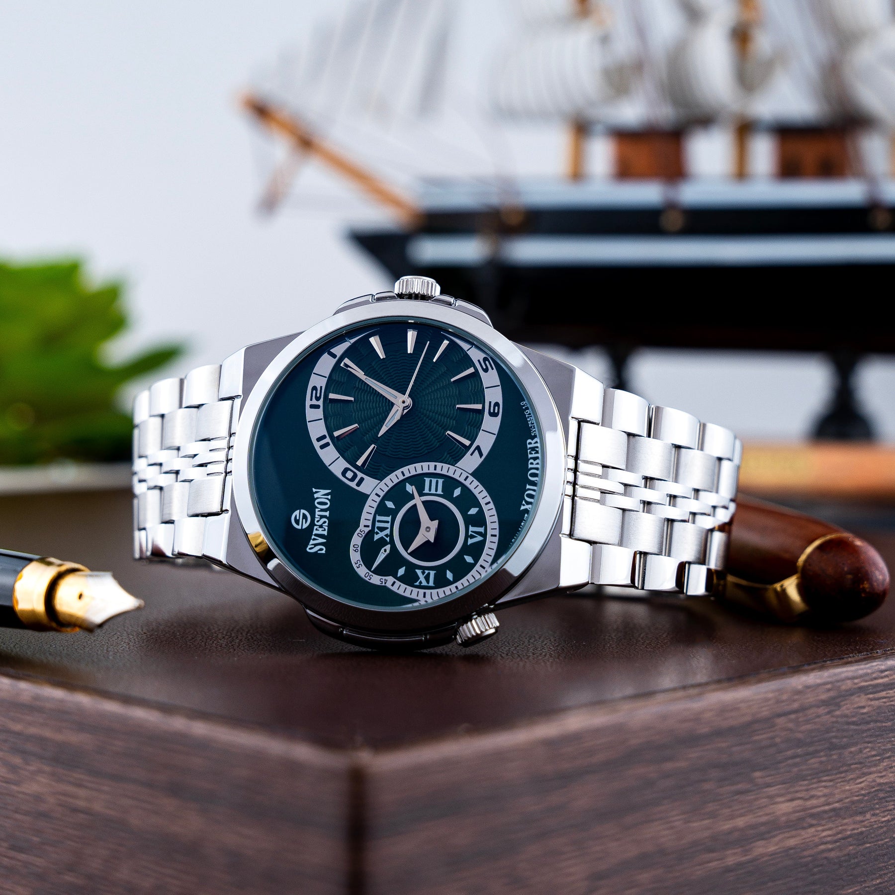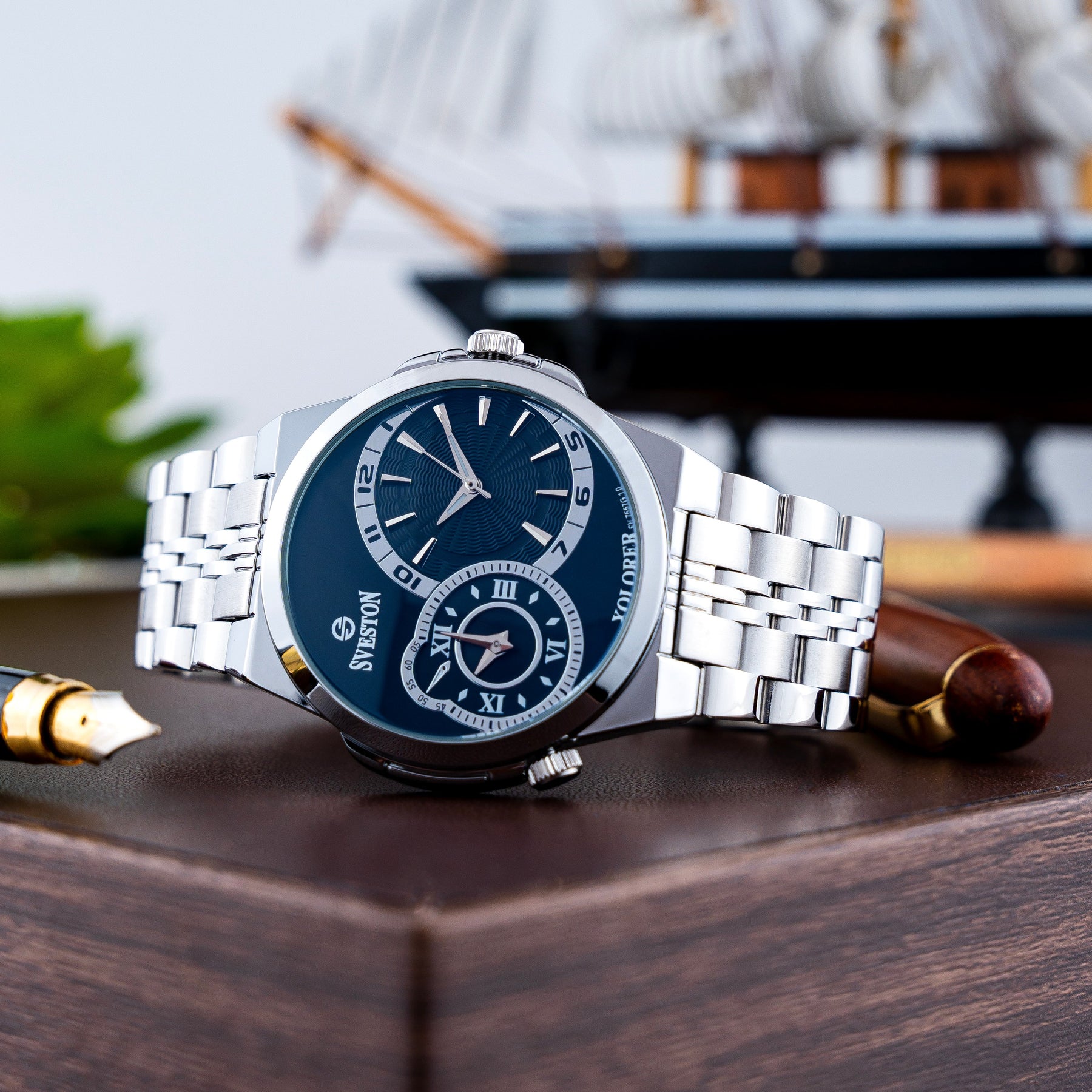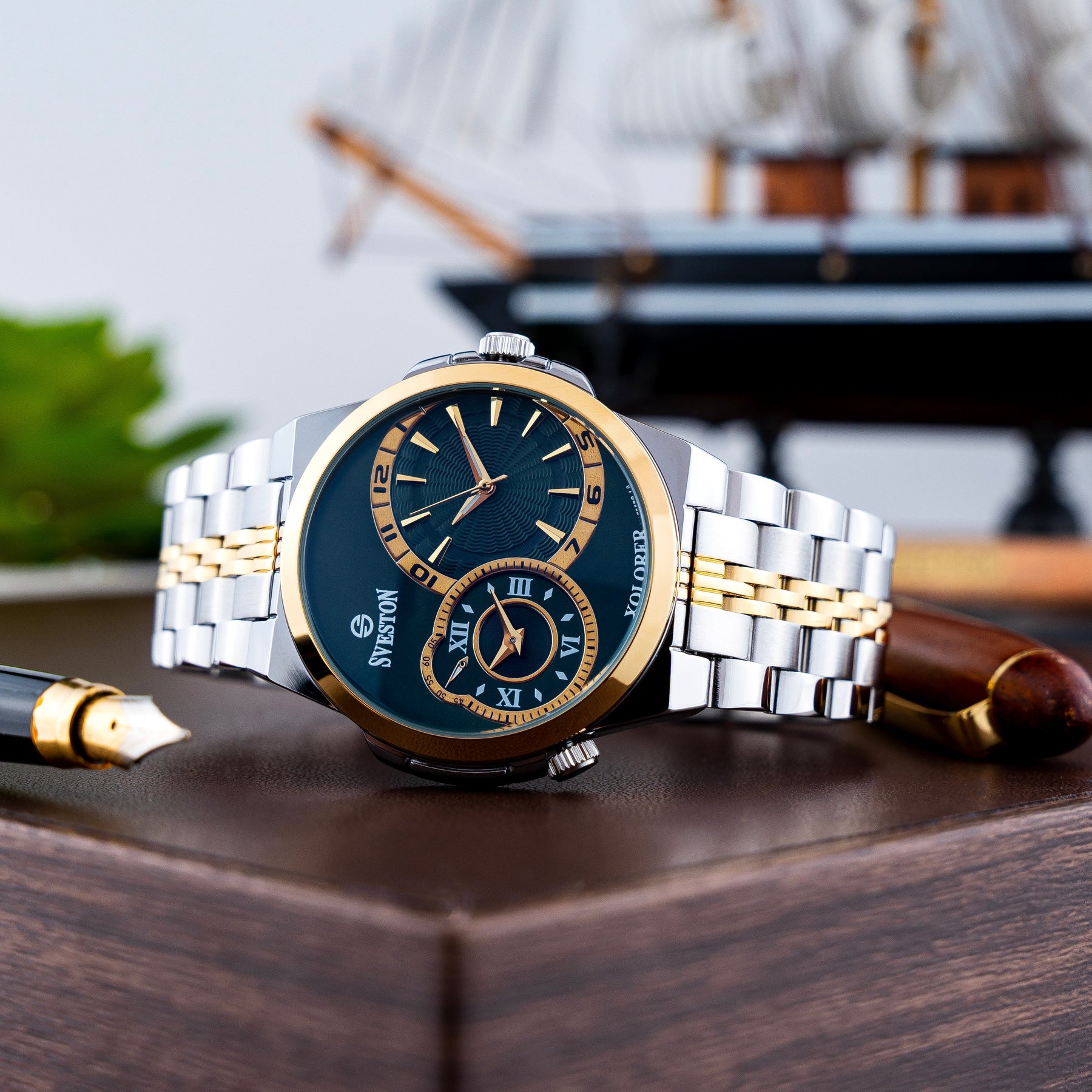 Experience refined luxury and unmatched precision with the Sveston Xolorer a men’s timepiece powered by reliable Japanese Quartz movement. Meticulously crafted from durable stainless steel, it features a 36mm case with a 43mm lug-to-lug distance and 3ATM water resistance. Weighing 121 grams, this elegant watch perfectly balances strength, style, and sophistication
