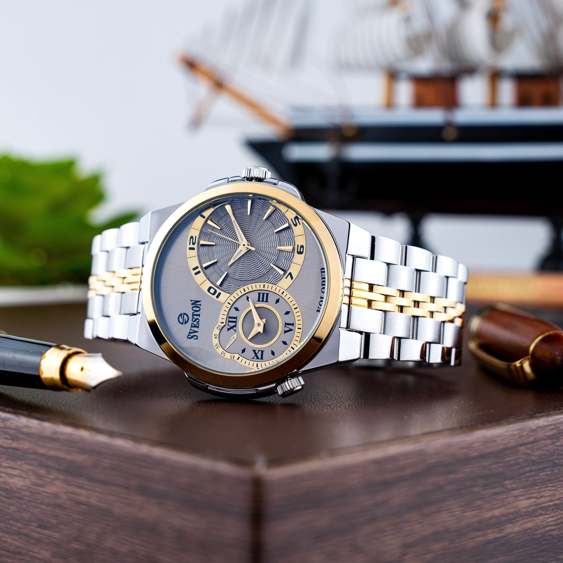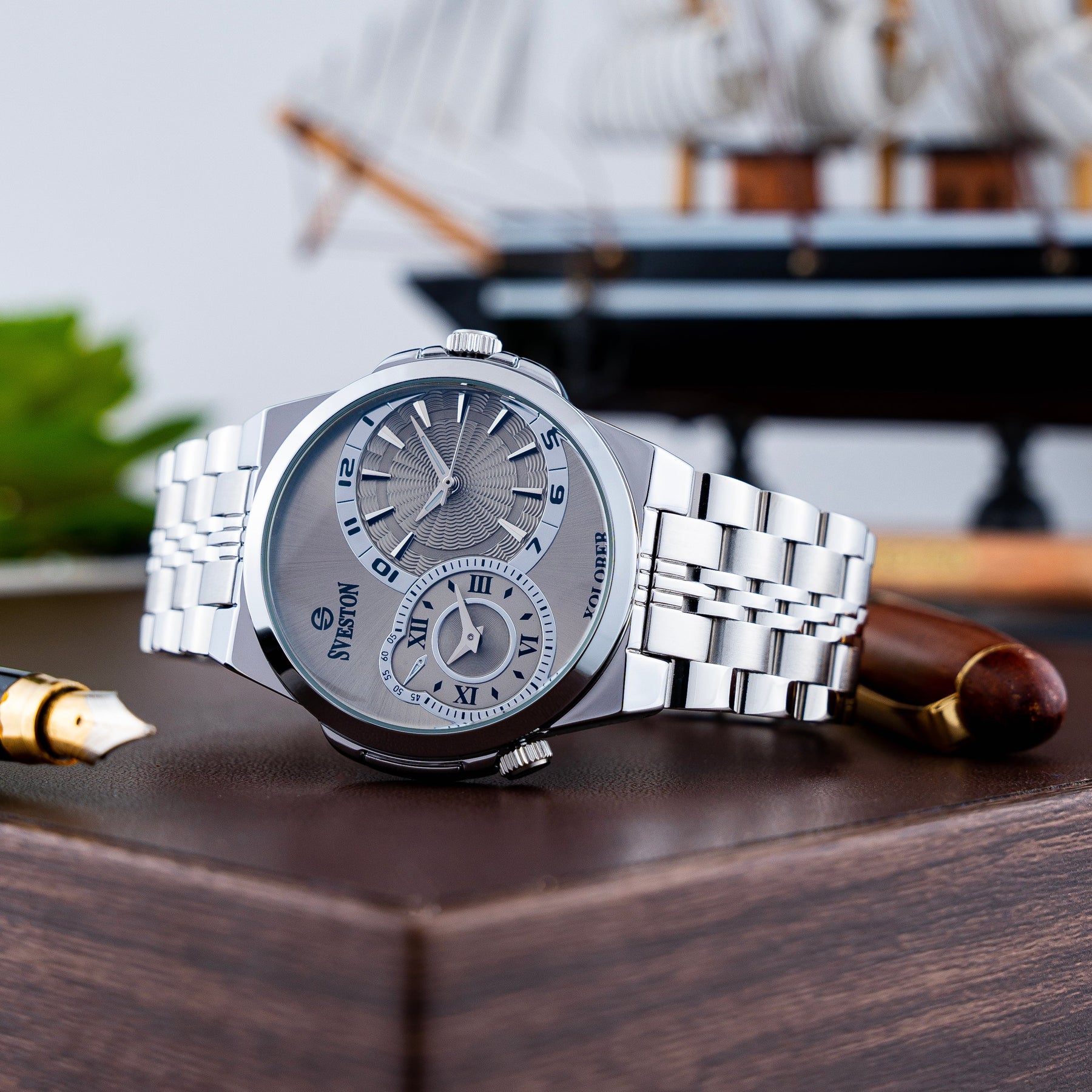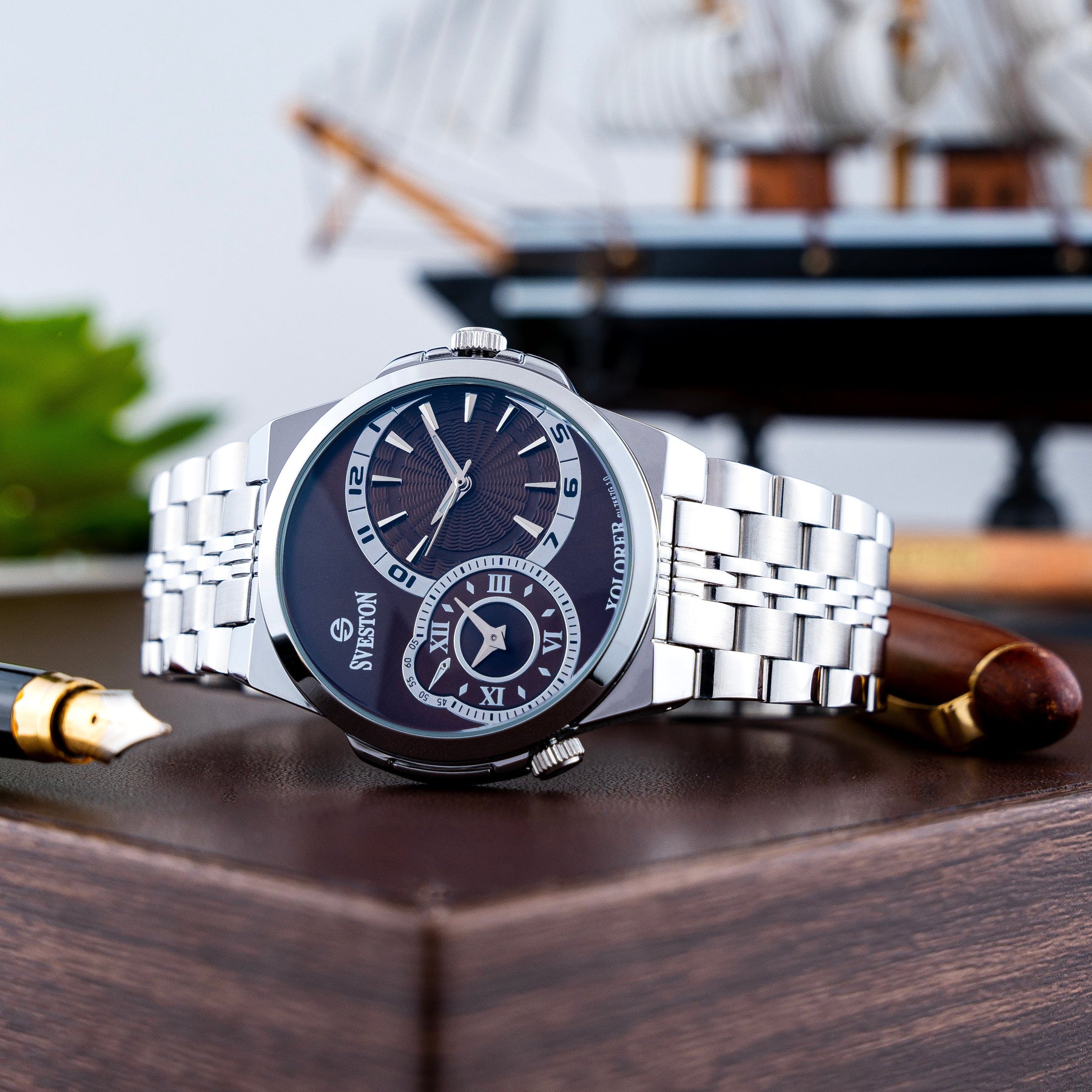 Sveston Xolorer is a distinguished gents’ stainless-steel wristwatch featuring a sleek 36mm dial, crafted to reflect modern elegance and timeless appeal