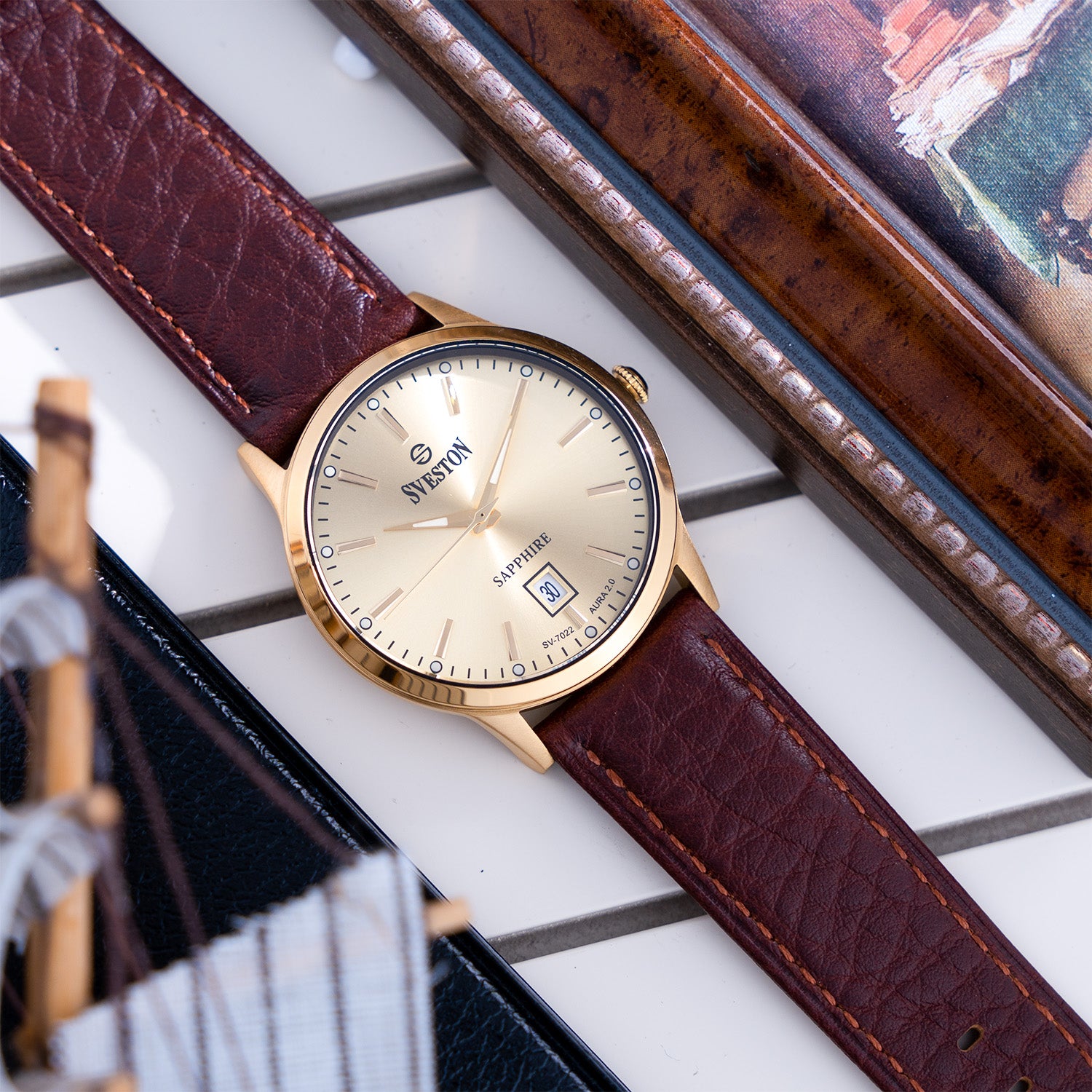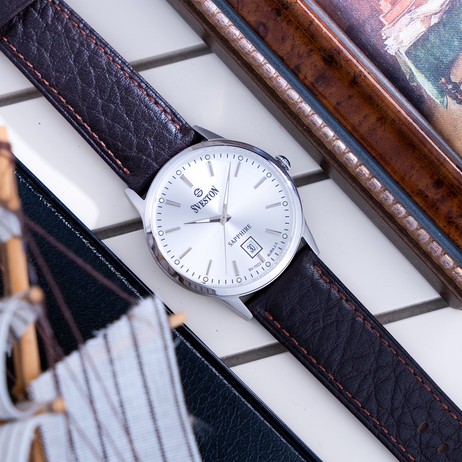 Sveston Classic Aura 2.0 is a formal gents leather watch featuring a 36mm dial with a premium leather strap, designed for a refined and sophisticated look.