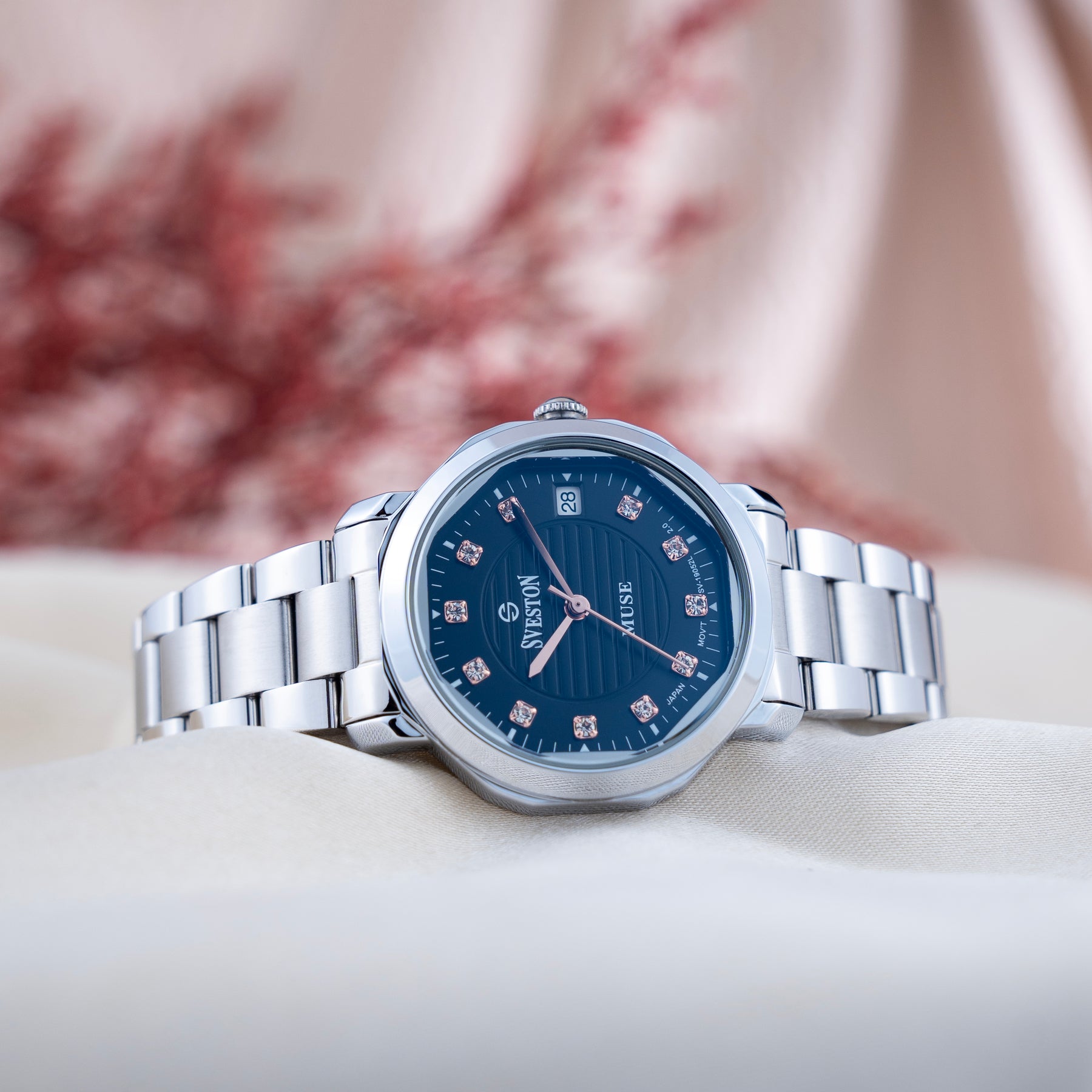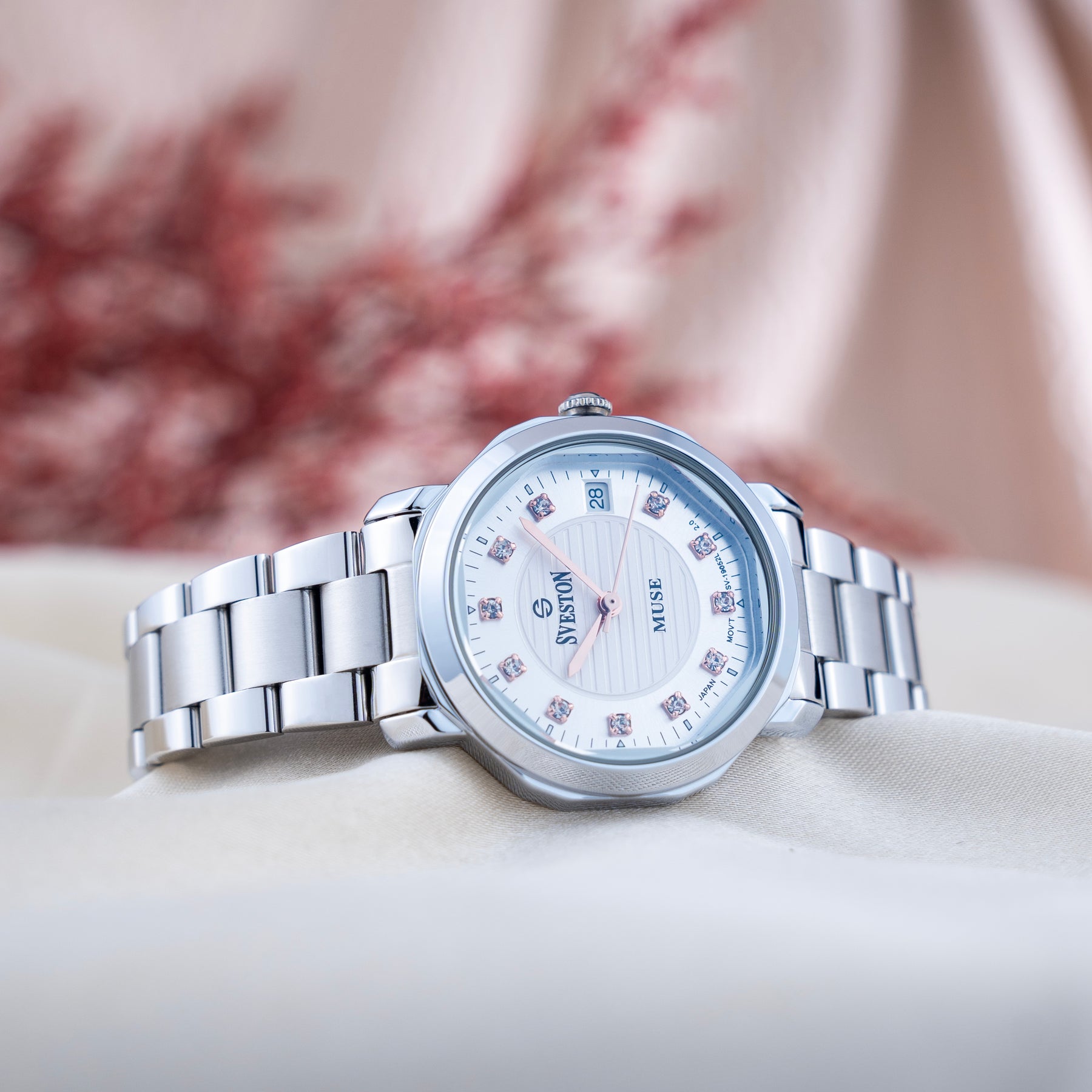The Muse watch embodies timeless elegance with its refined stainless steel design and delicate 28mm case designed for modern women who appreciate sophistication this exquisite timepiece weighs just 70 grams offers 3ATM water resistance and seamlessly blends style durability and everyday practicality whether worn for a special occasion or as part of daily attire the Divine watch strikes the perfect balance between luxury and functionality