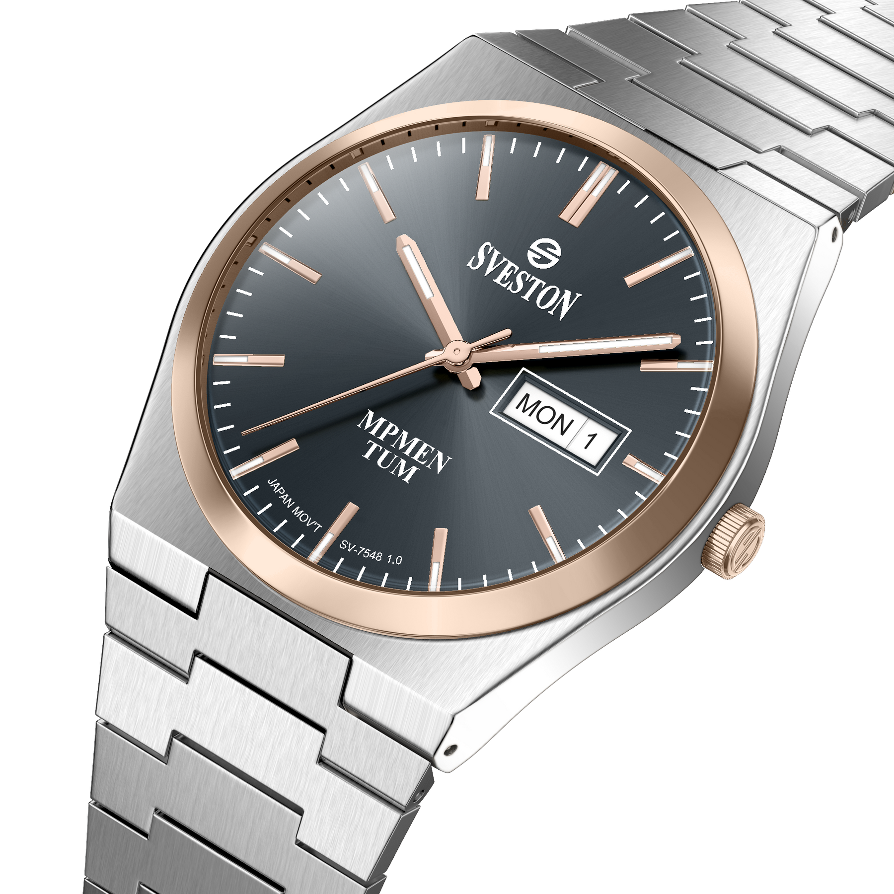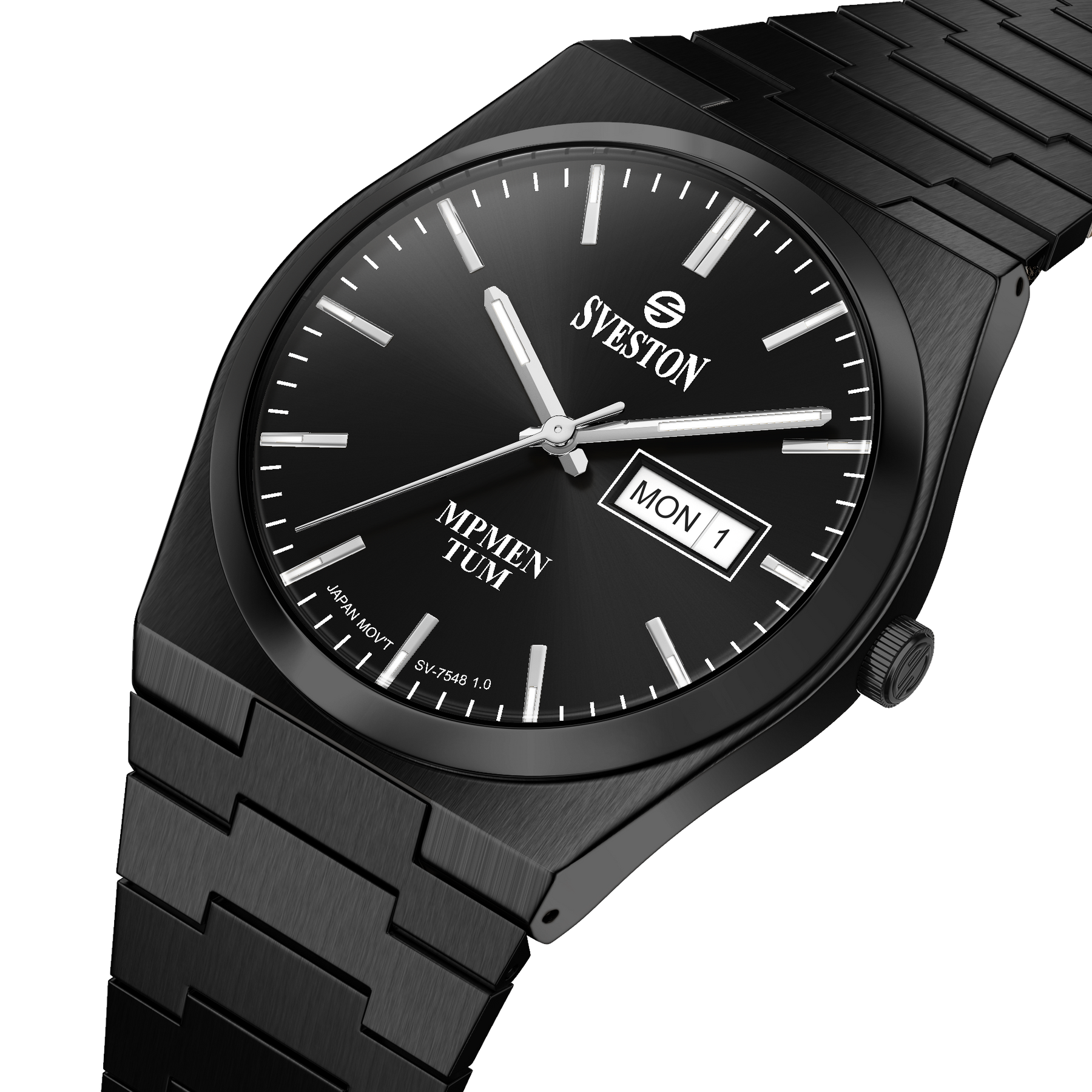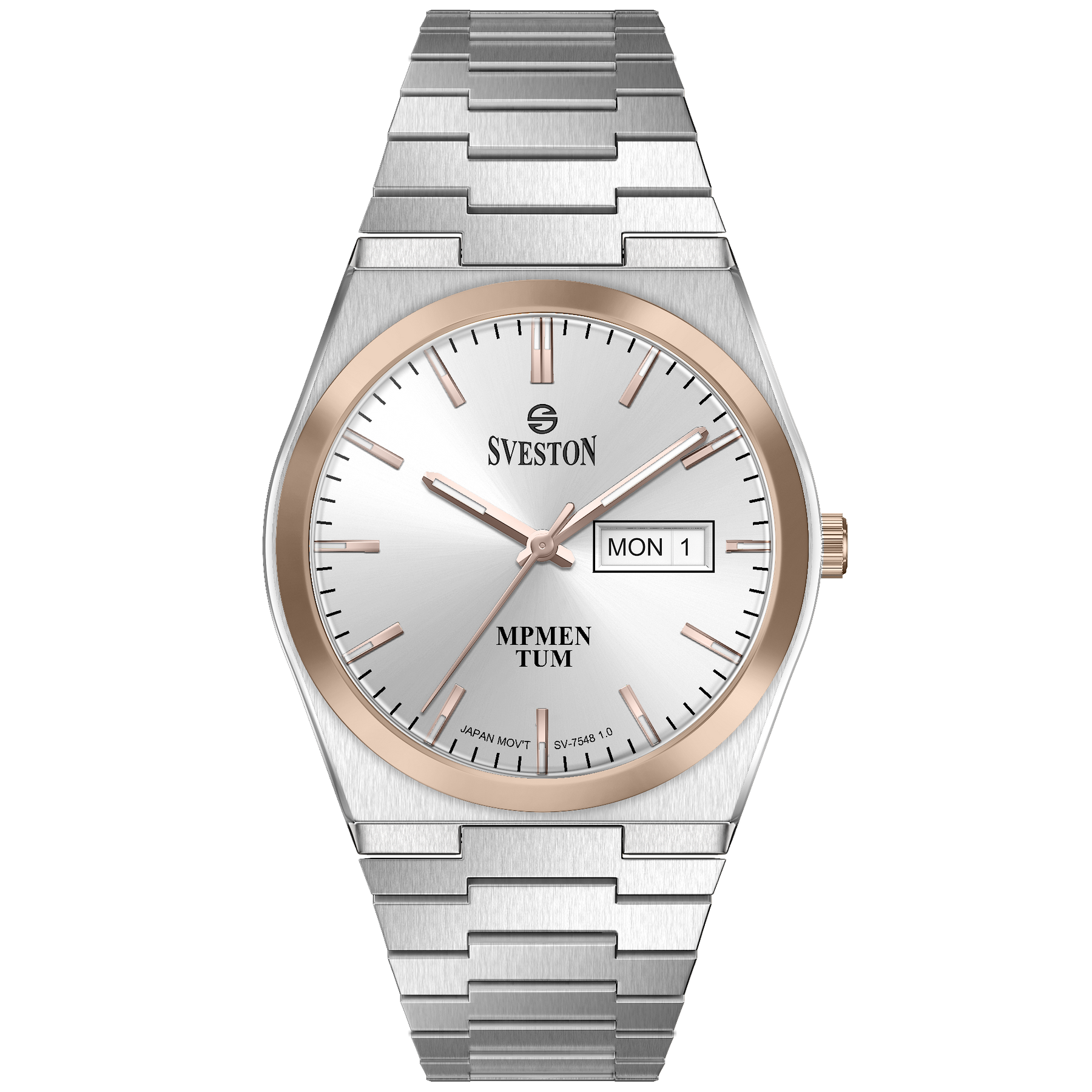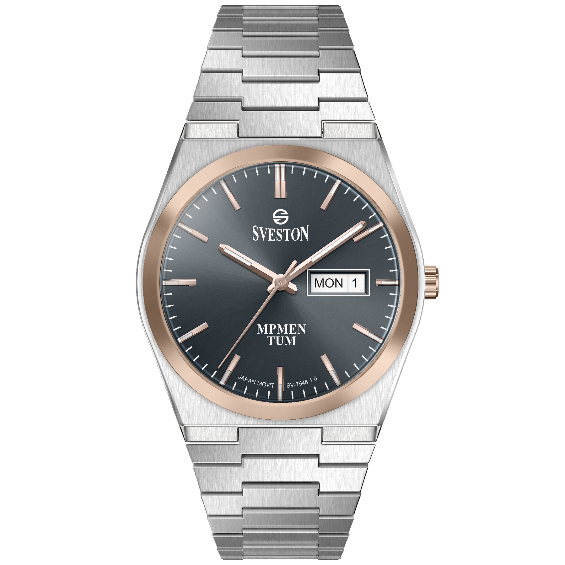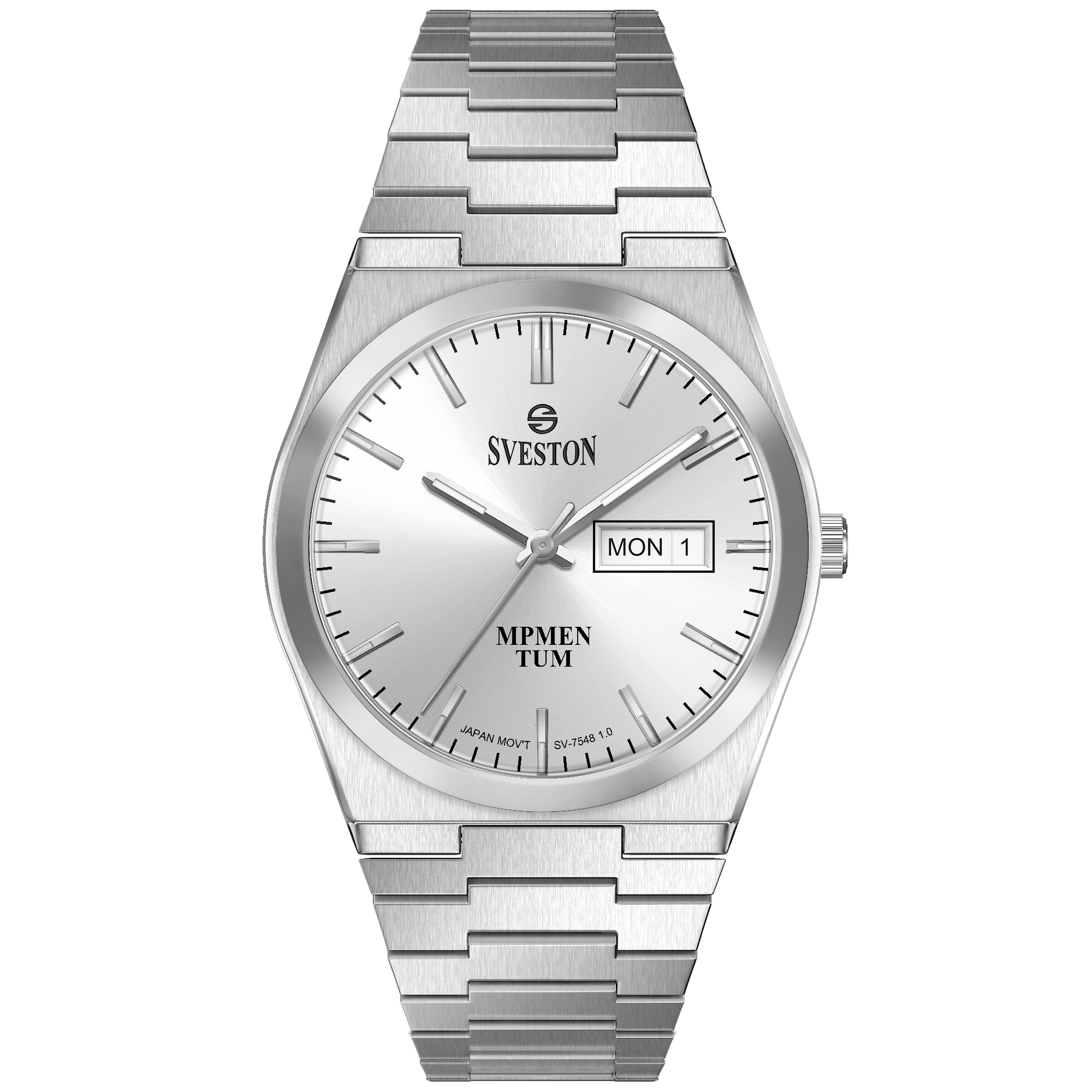 Sveston Mpmentum is a gents stainless-steel watch featuring a sleek 38mm dial, designed for a modern and refined look. It comes with a luxury watch case.