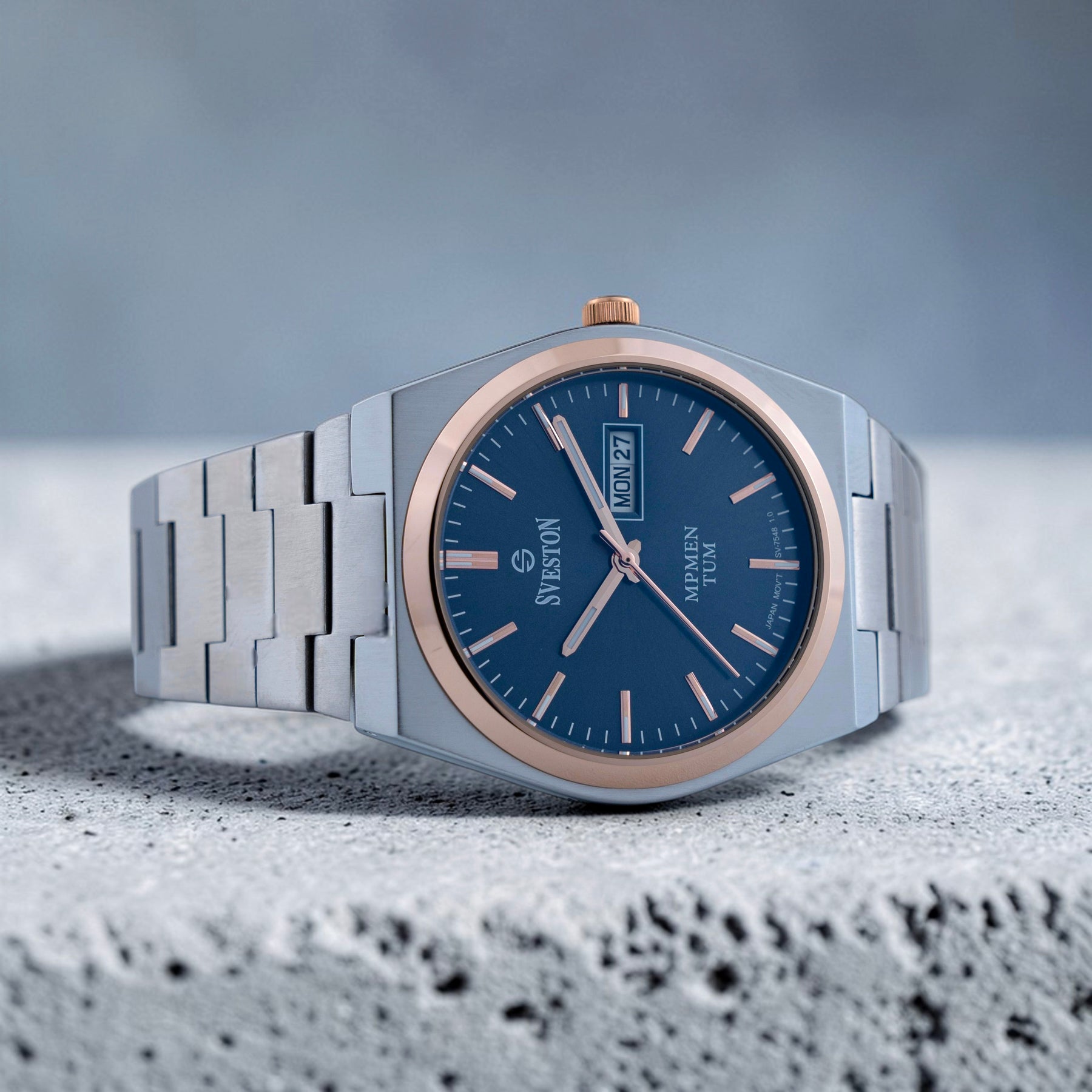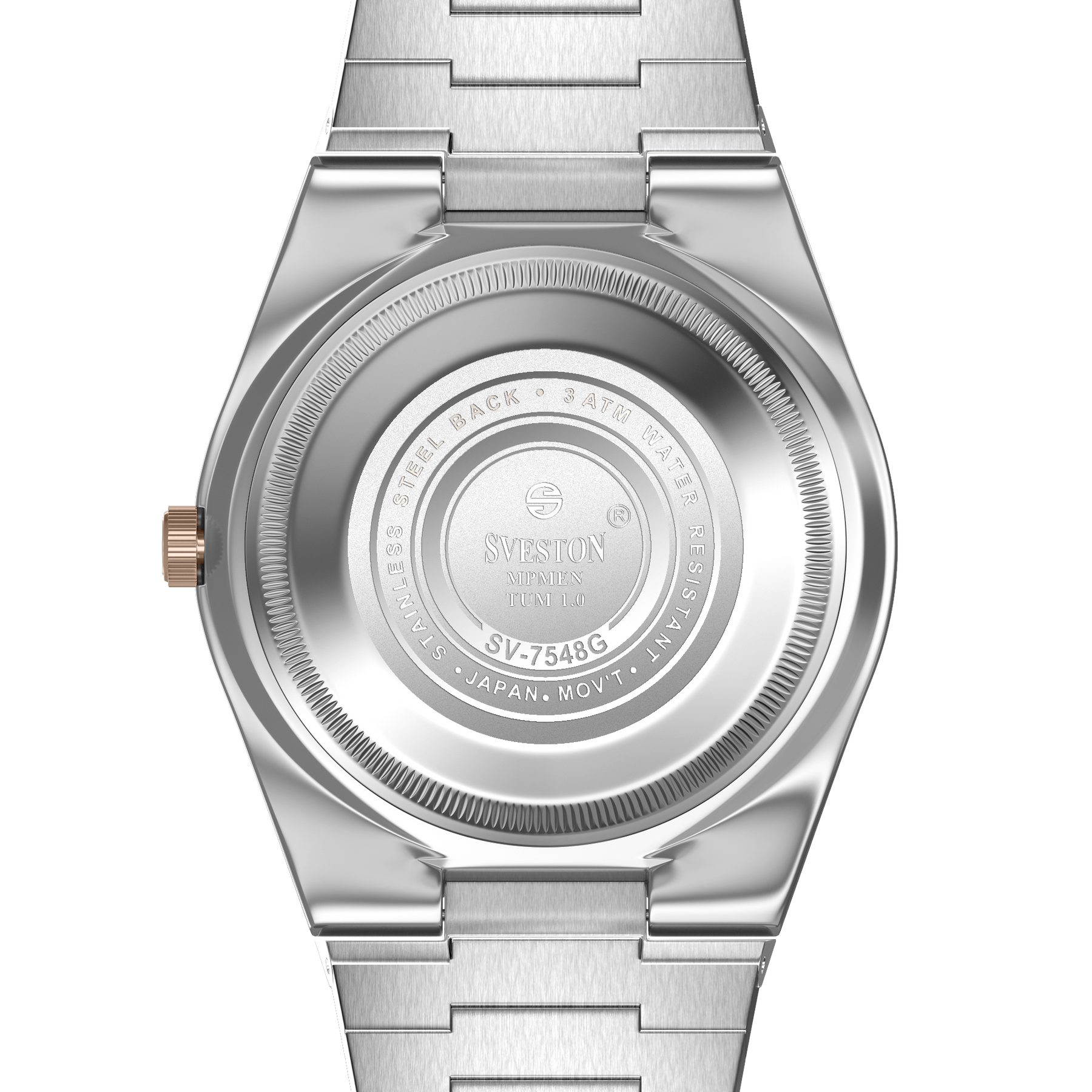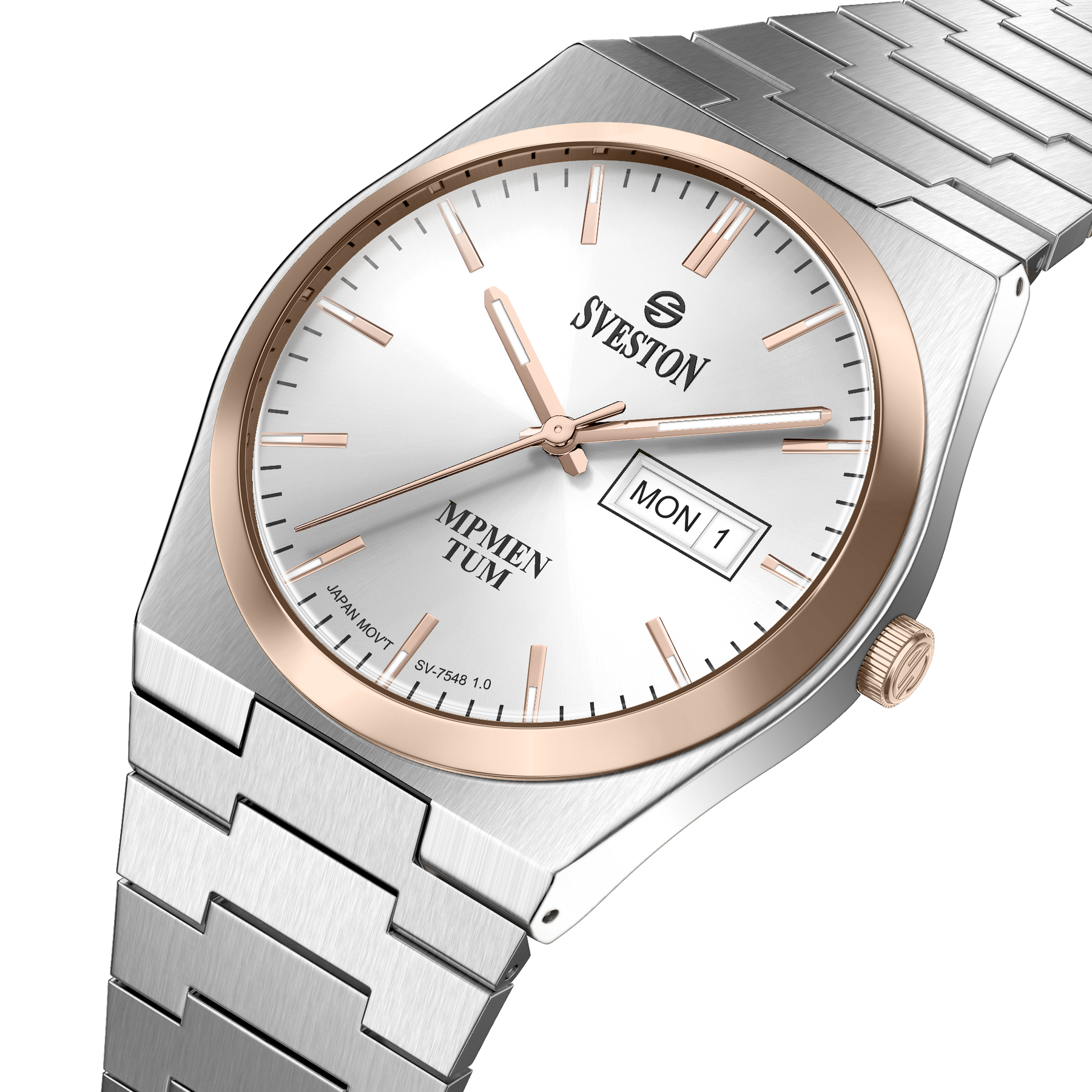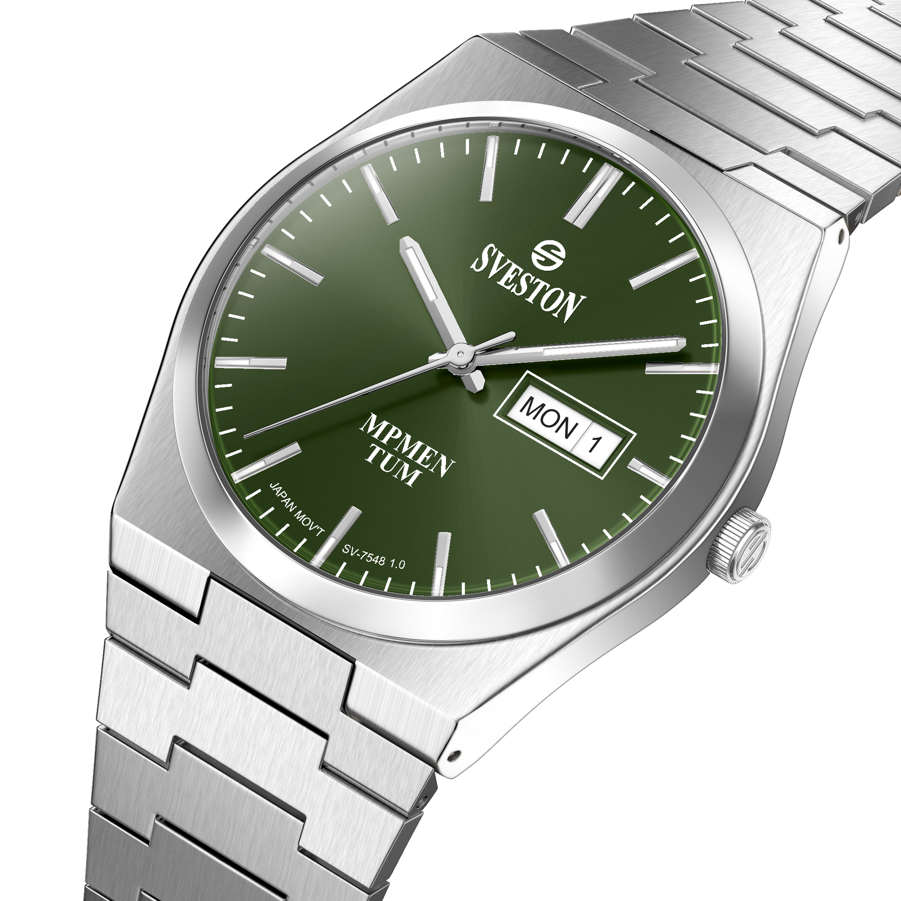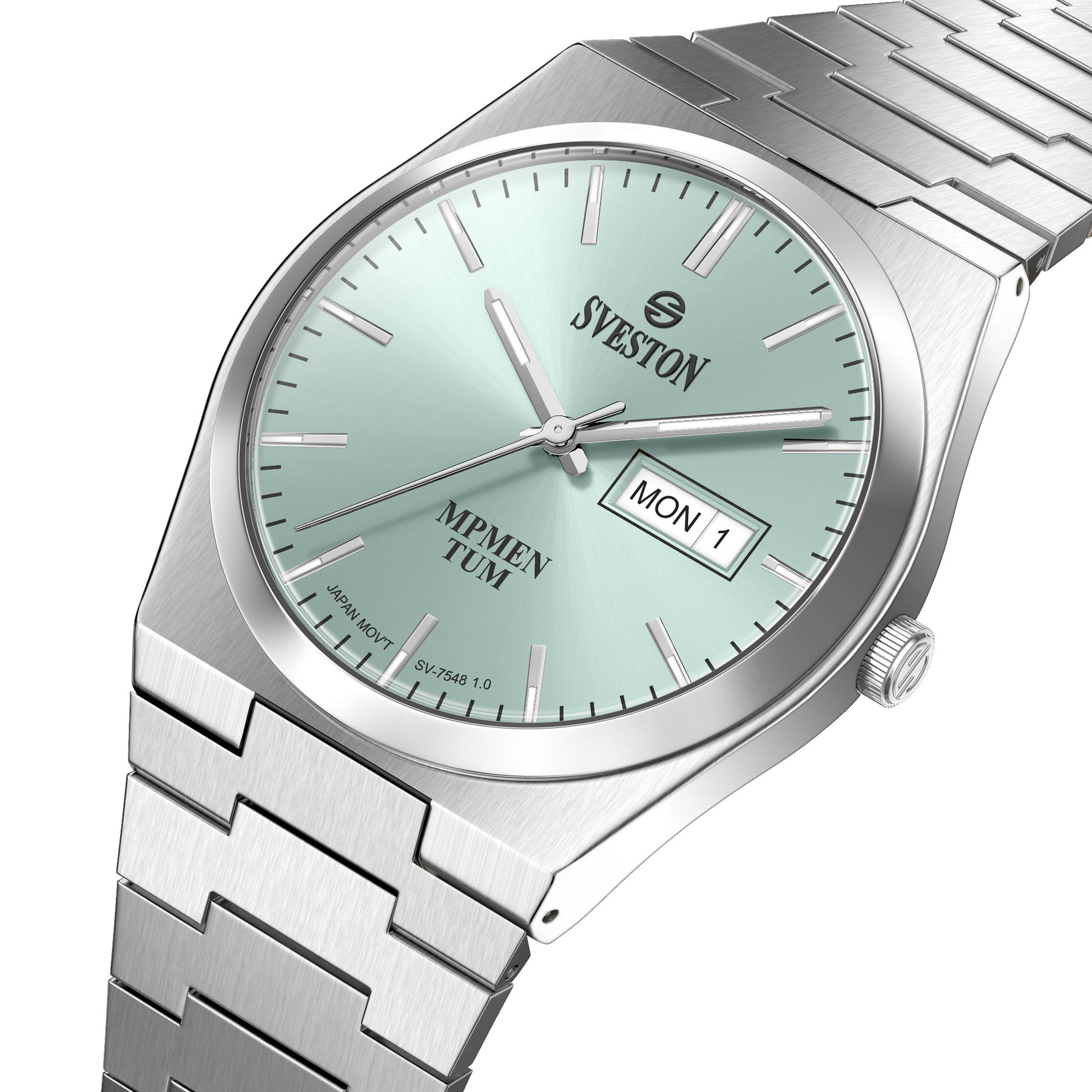 Sveston Mpmentum is a gents stainless-steel watch featuring a sleek 38mm dial, designed for a modern and refined look. It comes with a luxury watch case.