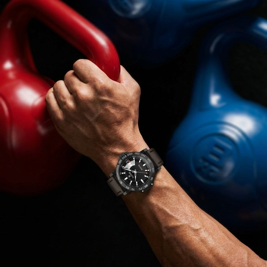 Wrapped around the wrist, the leather strap locks in comfort with authority. Sturdy enough for daily wear, sleek enough for every move.