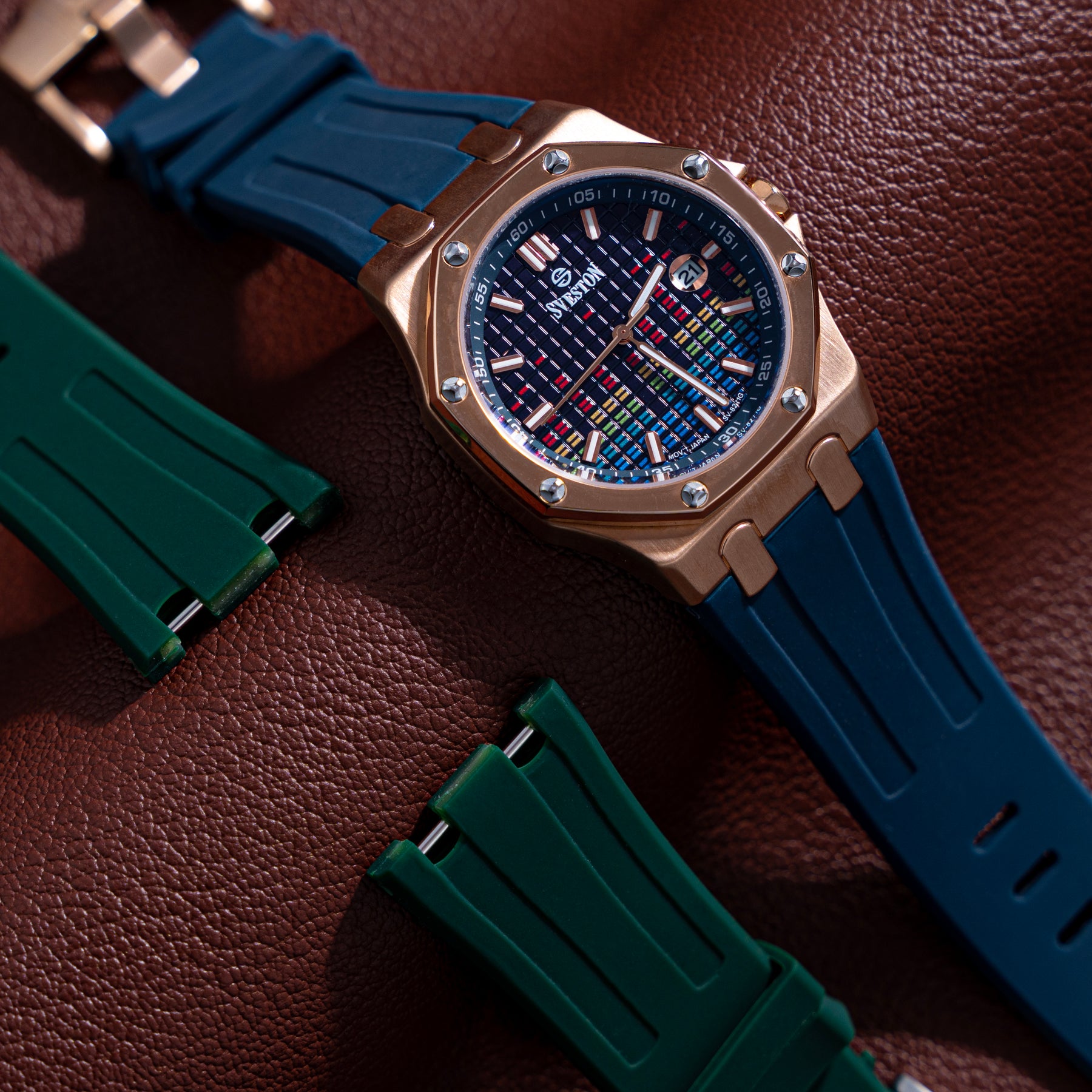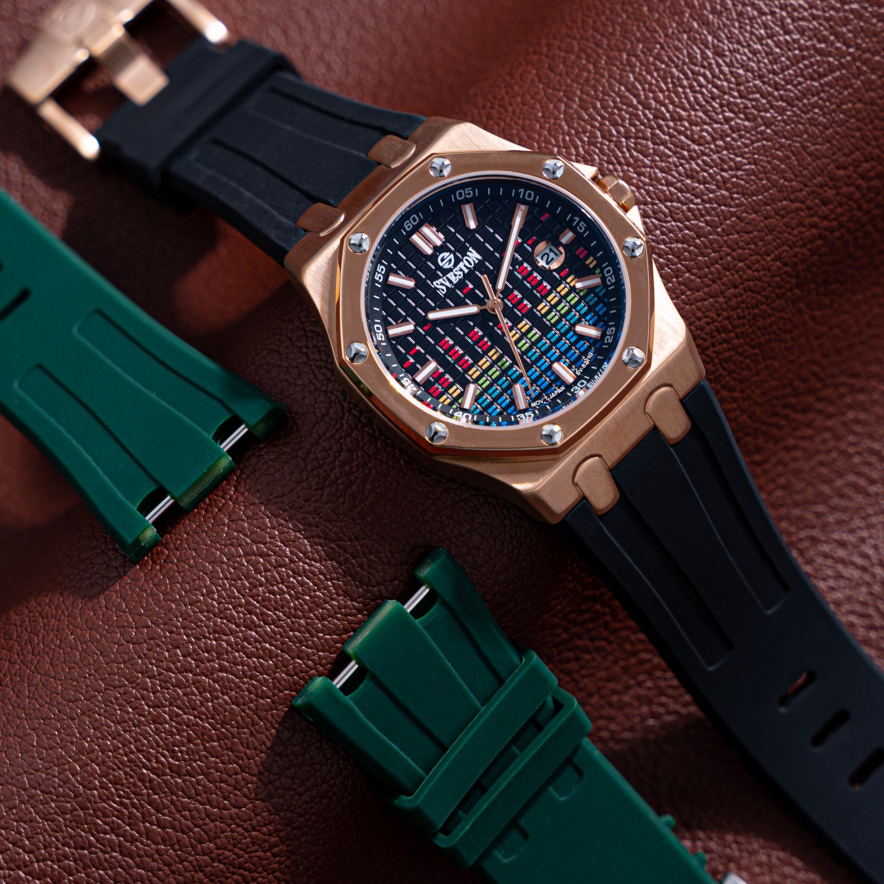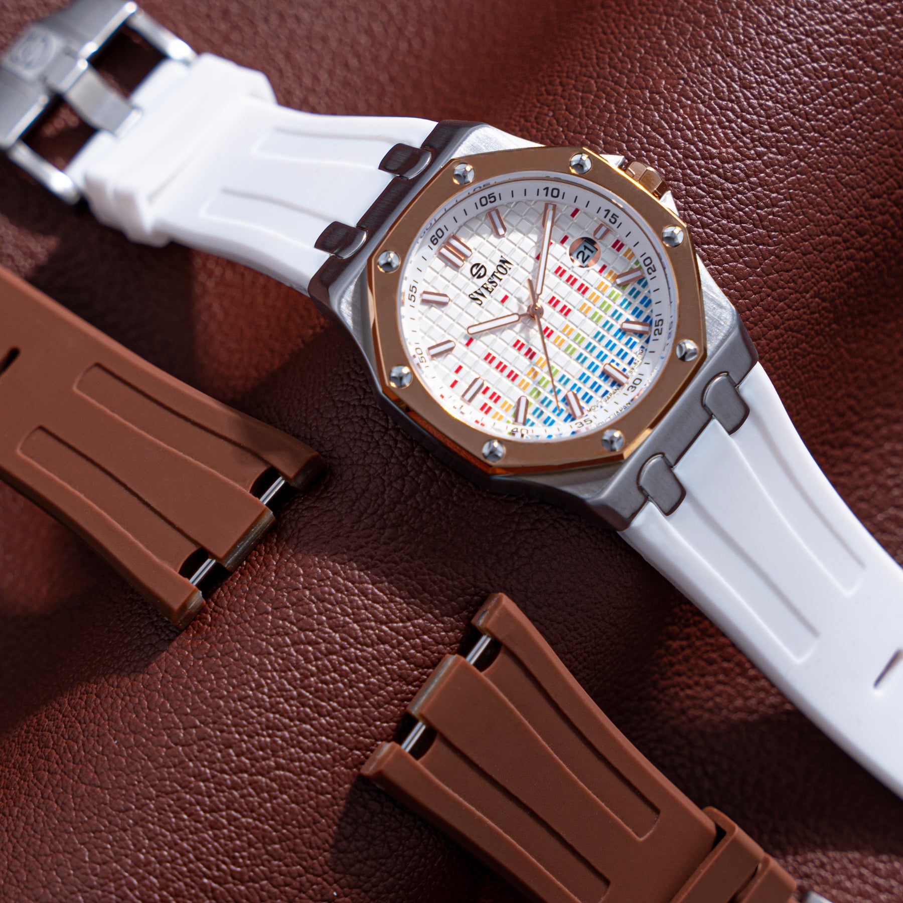 Sveston Cresta Silicone is a sophisticated men’s watch with a 38mm dial, crafted for luxurious comfort and bold style. Perfect for those who value refined craftsmanship, it blends elegance with modern flair