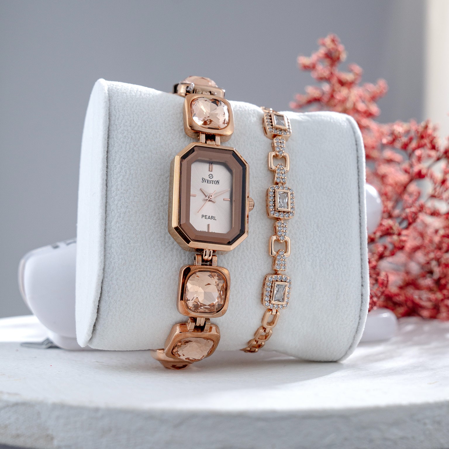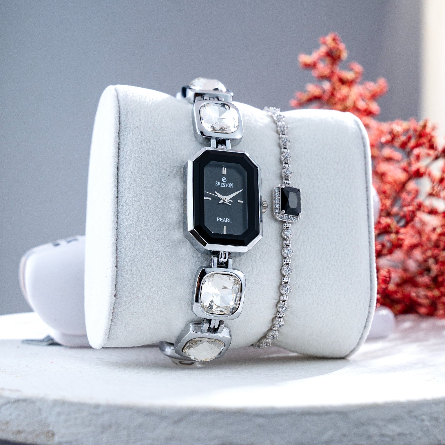 Sveston Pearl Jewellery Is a Feminine Stainless Steel Bracelet Watch Having 17mm Dial and Comes with Luxury Watch Case.