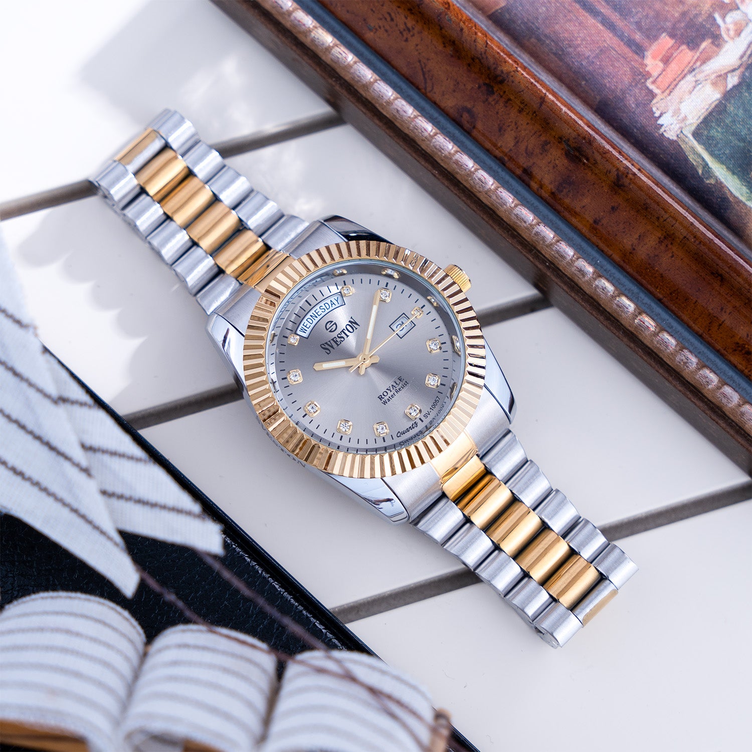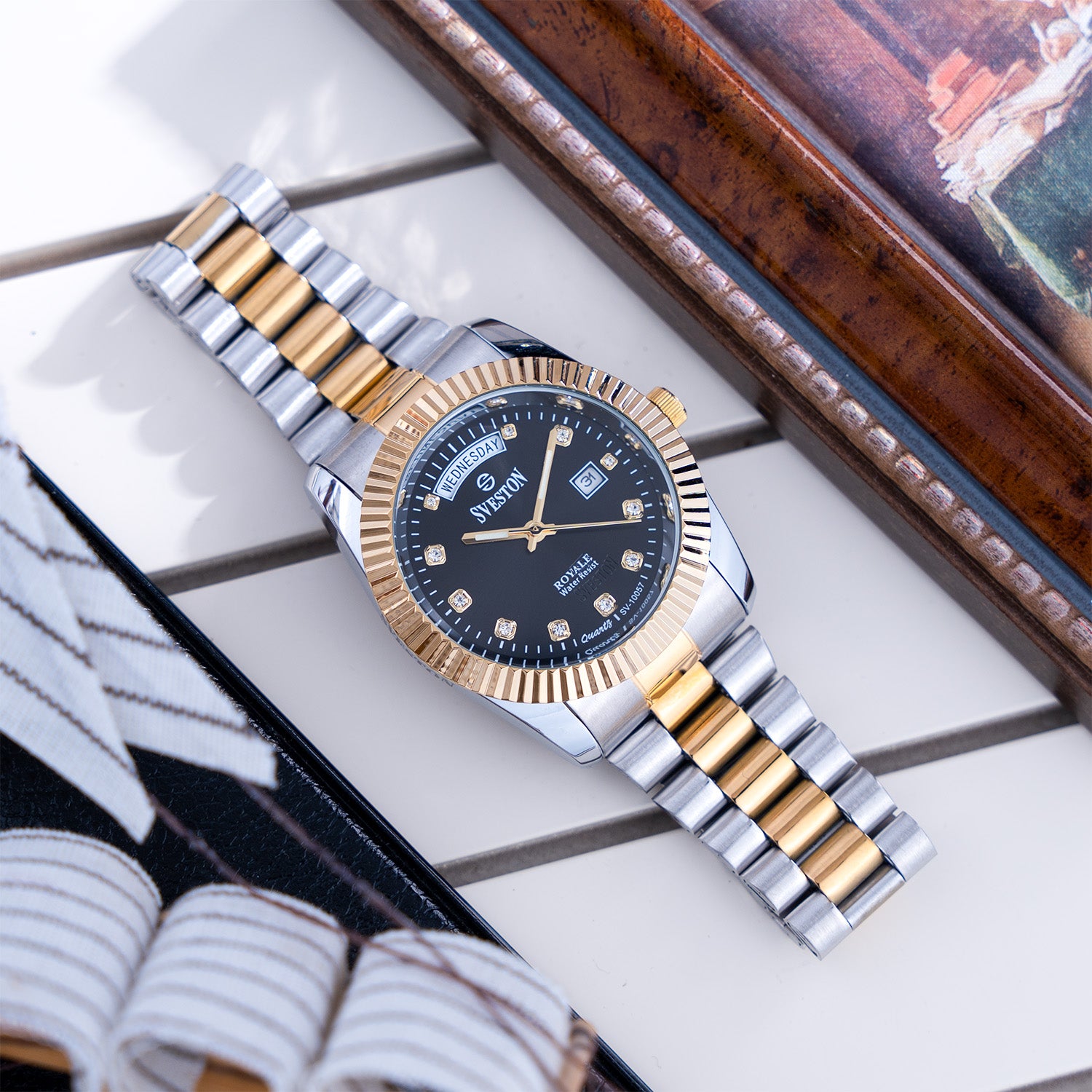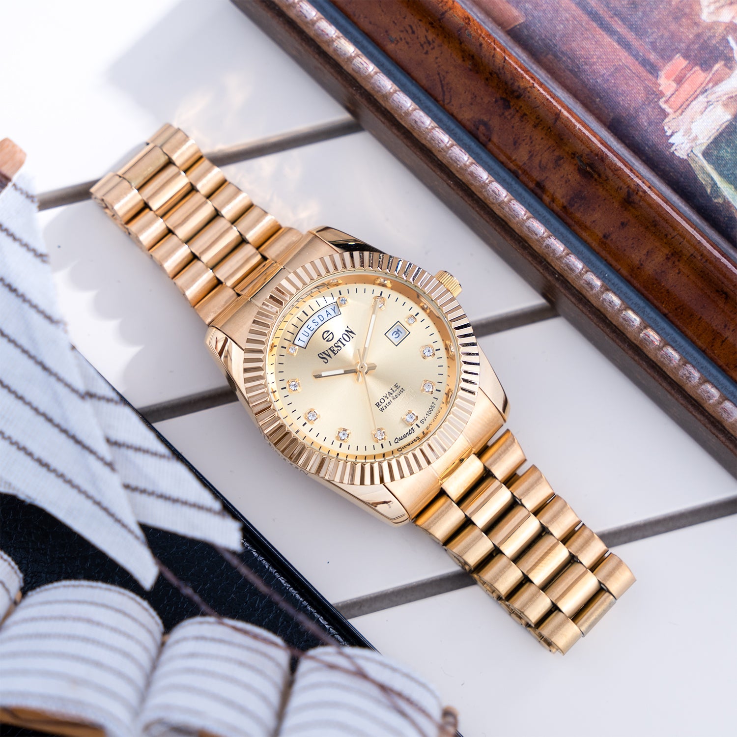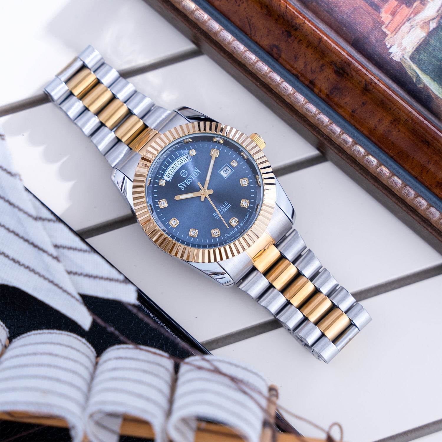 Sveston Royale Is a gents Stainless steel watch having 34mm dial and Comes with luxury watch Case