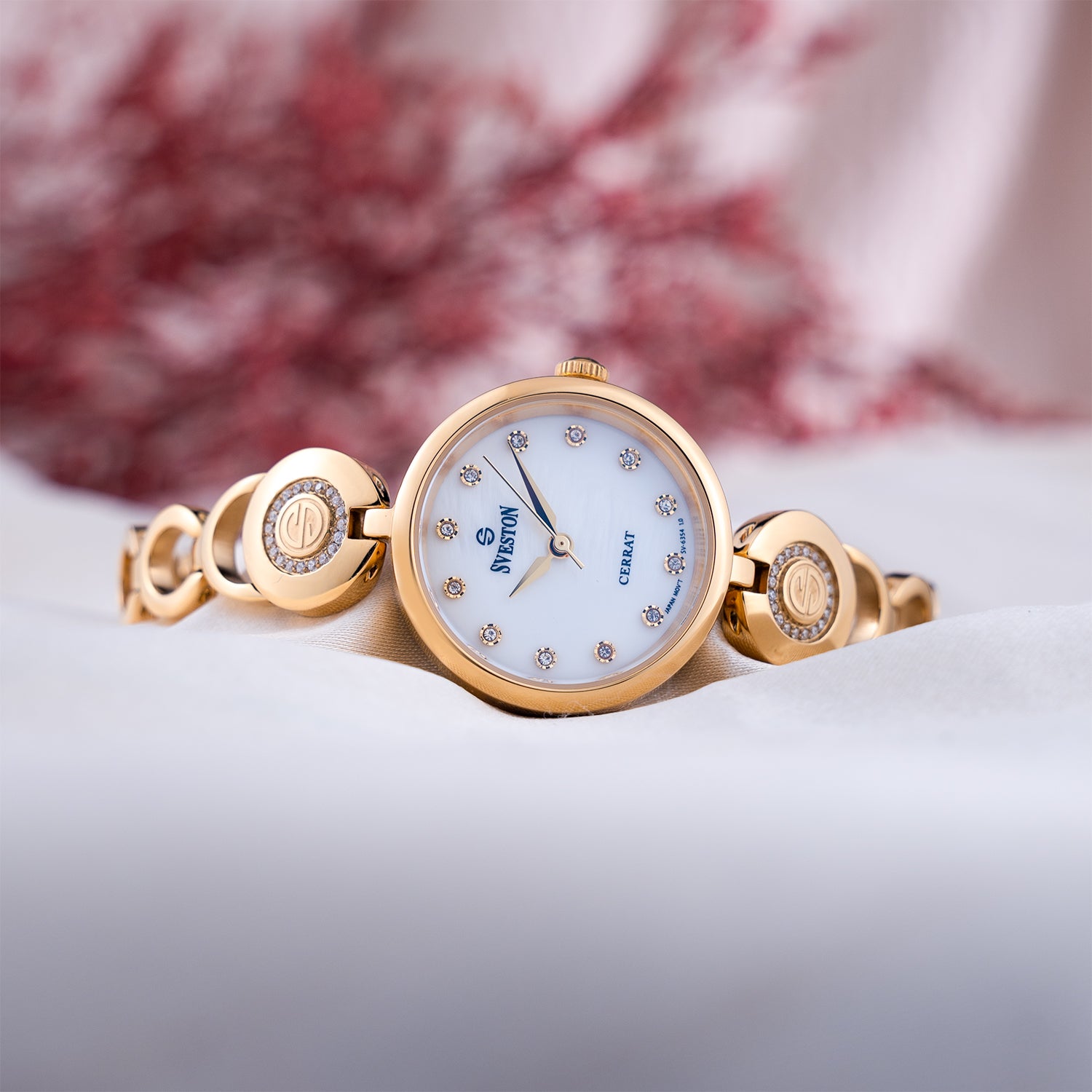 Sveston Cerrat is a stylish feminine bracelet watch with a 24mm round dial, designed for everyday elegance and presented in a sleek, elegant package