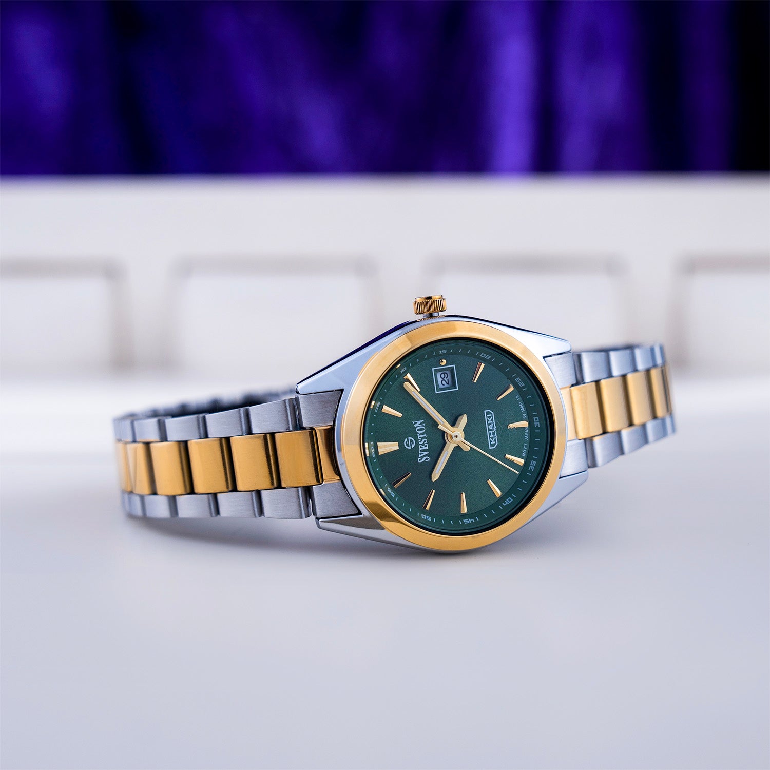Sveston Khaki a timeless women's stainless-steel watch with a 24mm dial embodies understated elegance and refined style.
