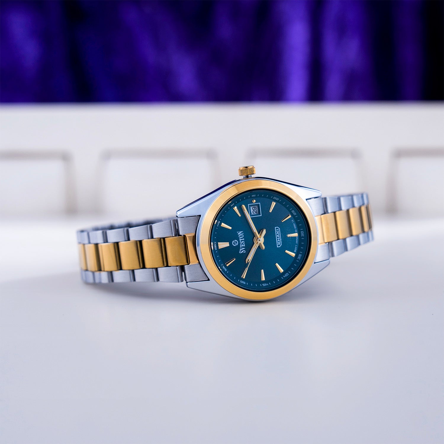 Sveston Khaki Formal Women's Stainless Steel Watch meticulously designed with Japanese Quartz movement, 3ATM water resistance, and a polished 24mm case size with a 31mm lug-to-lug distance. Weighing just 60 grams, it ensures a comfortable fit. This watch combines sophisticated aesthetics with superior performance, making it perfect for formal wear.