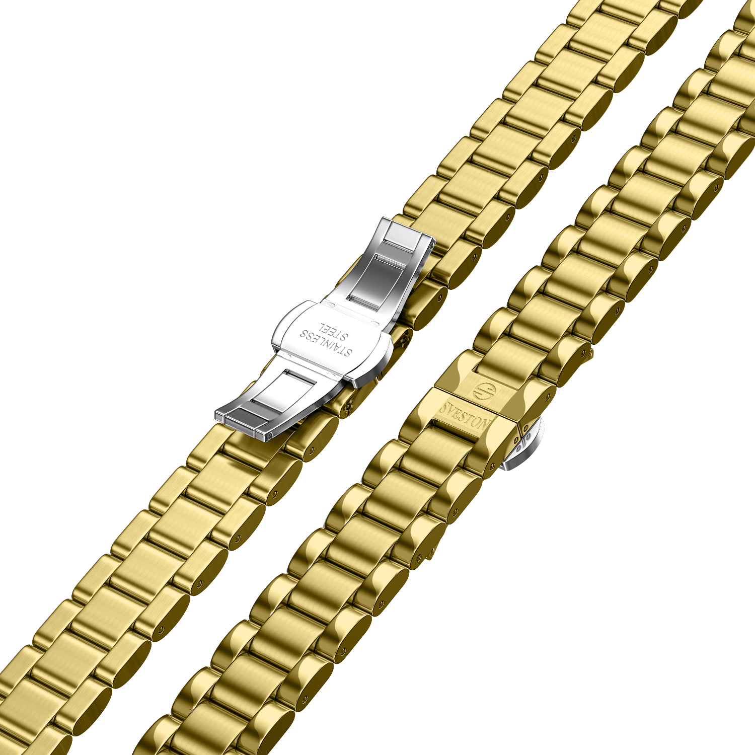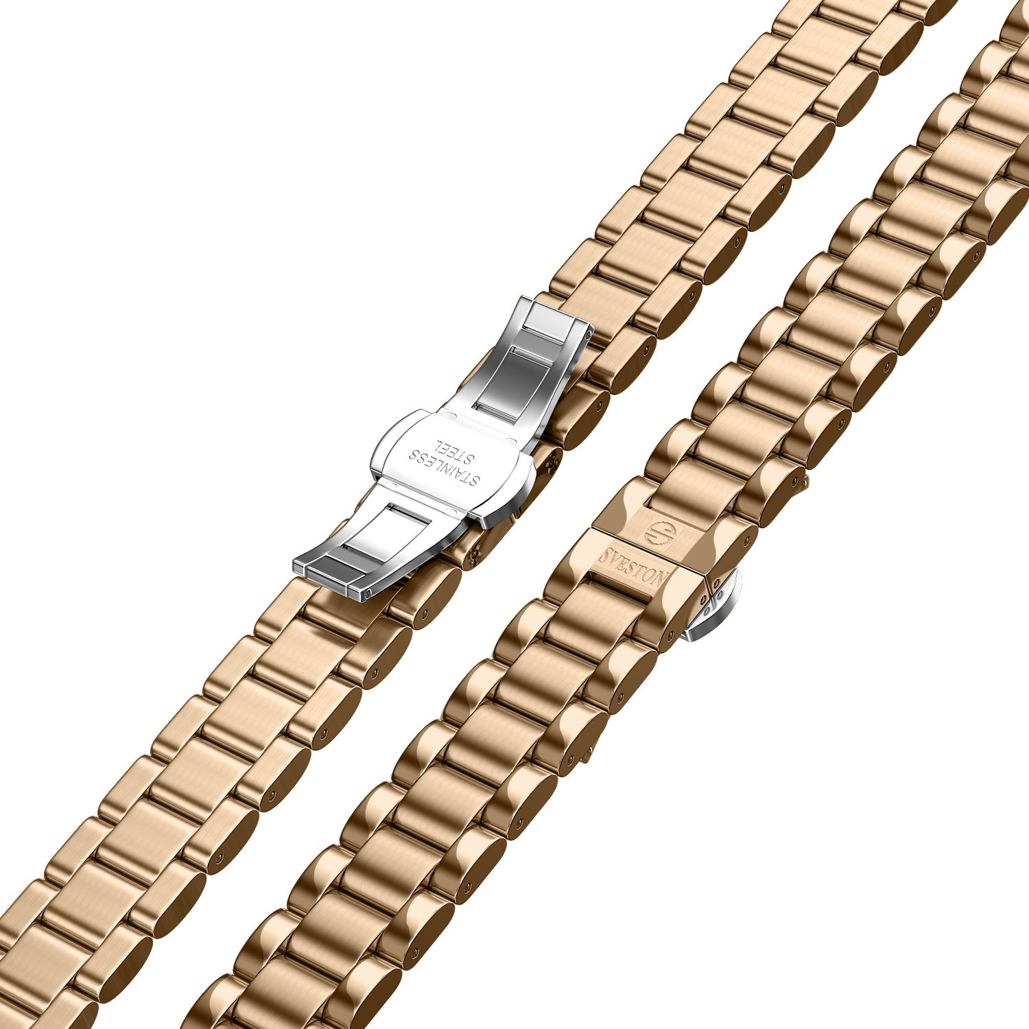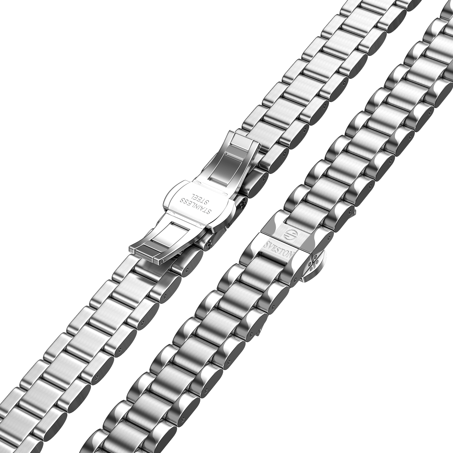 A finely articulated multi-link bracelet, polished and engineered for seamless motion, wrapping the wrist with the ease of jewelry and the resilience of steel.